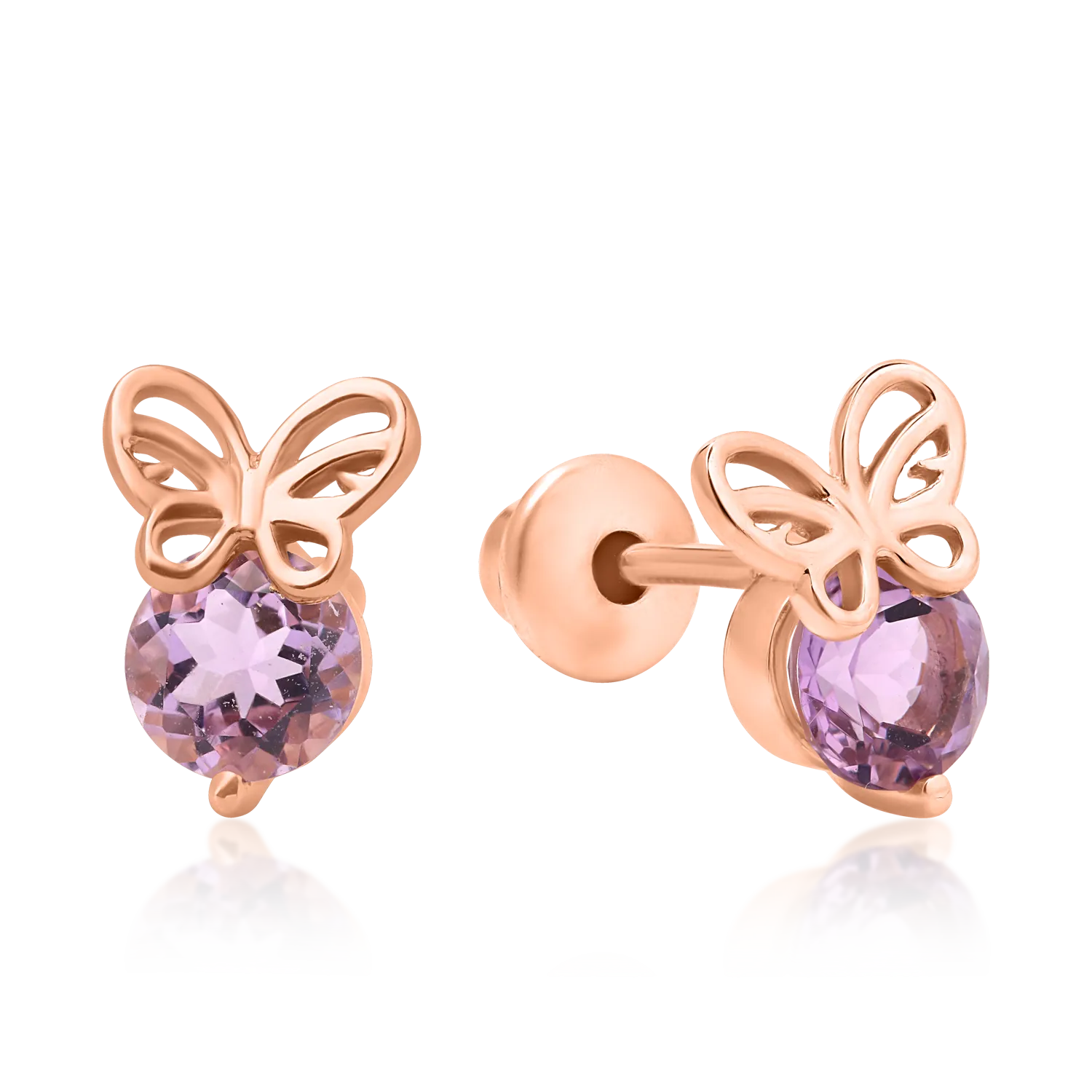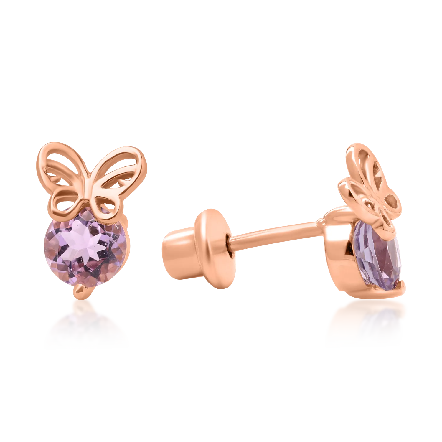 Cercei fluturasi pentru copii din aur roz cu ametiste roz de 0.53ct