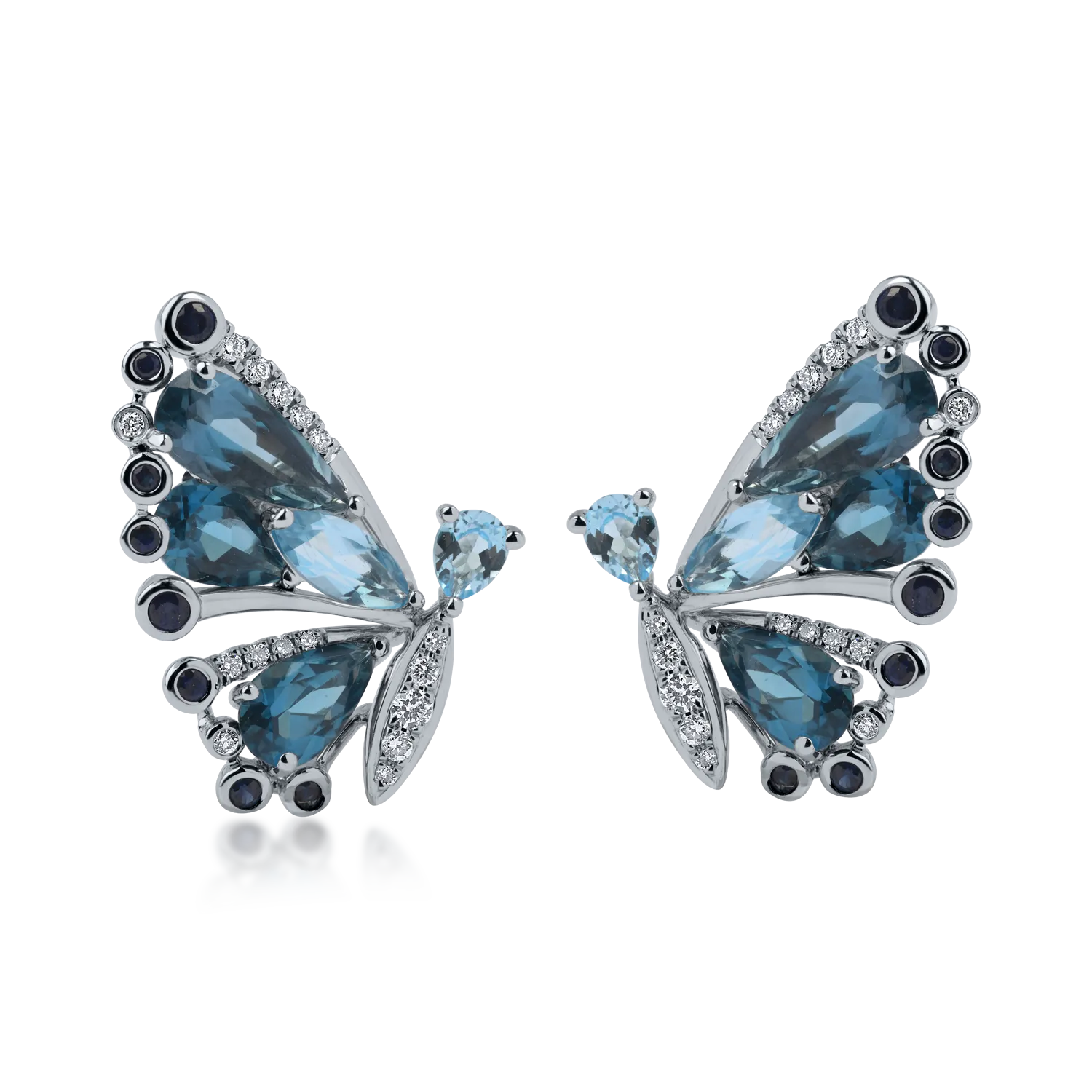 Cercei fluture din aur alb cu pietre pretioase si semipretioase de 5.11ct