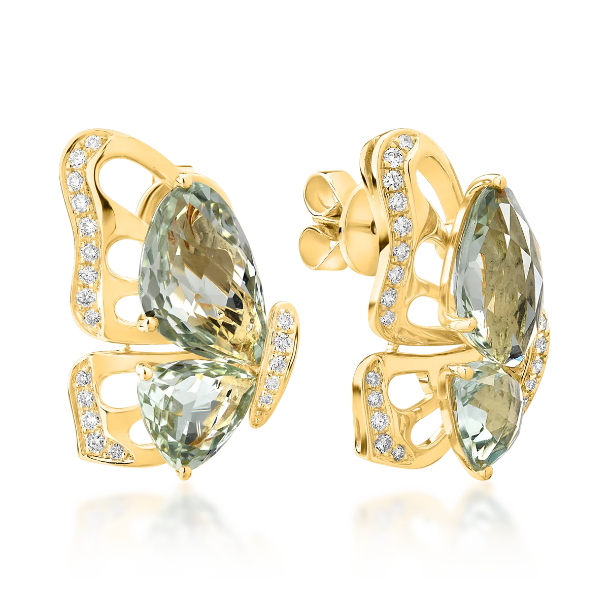 Cercei fluture din aur galben cu ametiste verzi de 7.7ct si diamante de 0.28ct