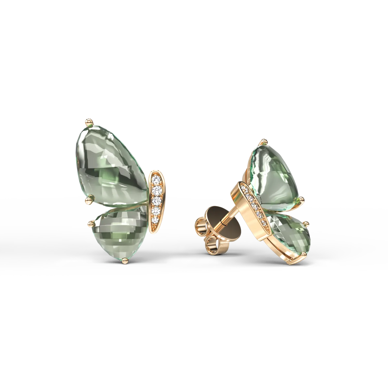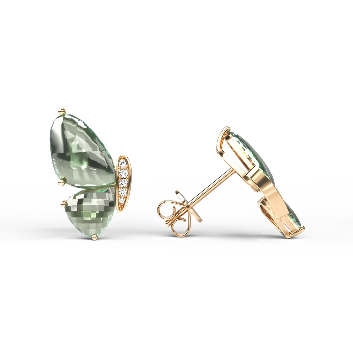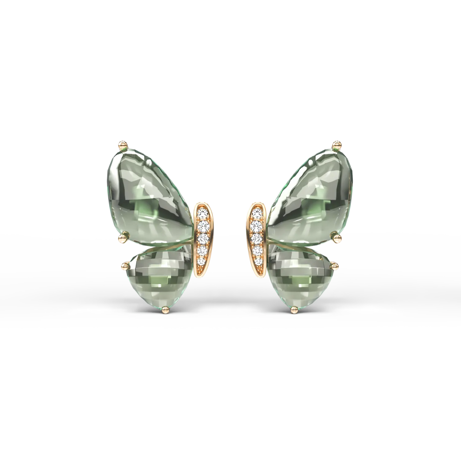 Cercei fluture din aur galben cu ametiste verzi de 8.5ct si diamante de 0.06ct