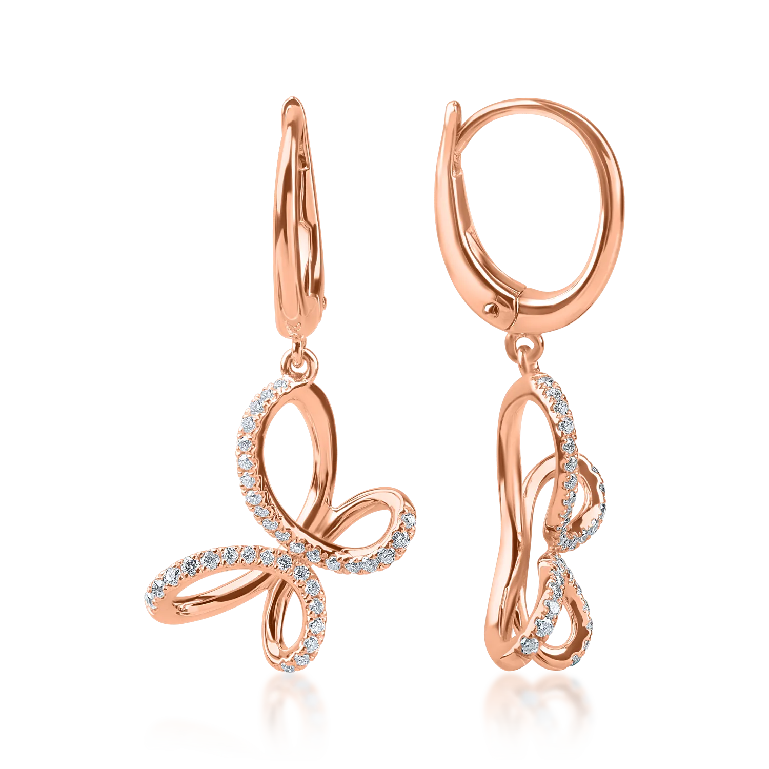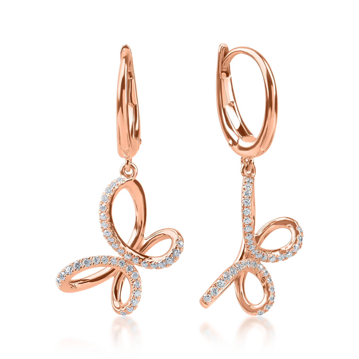 Cercei fluturi din aur roz cu diamante de 0.2ct