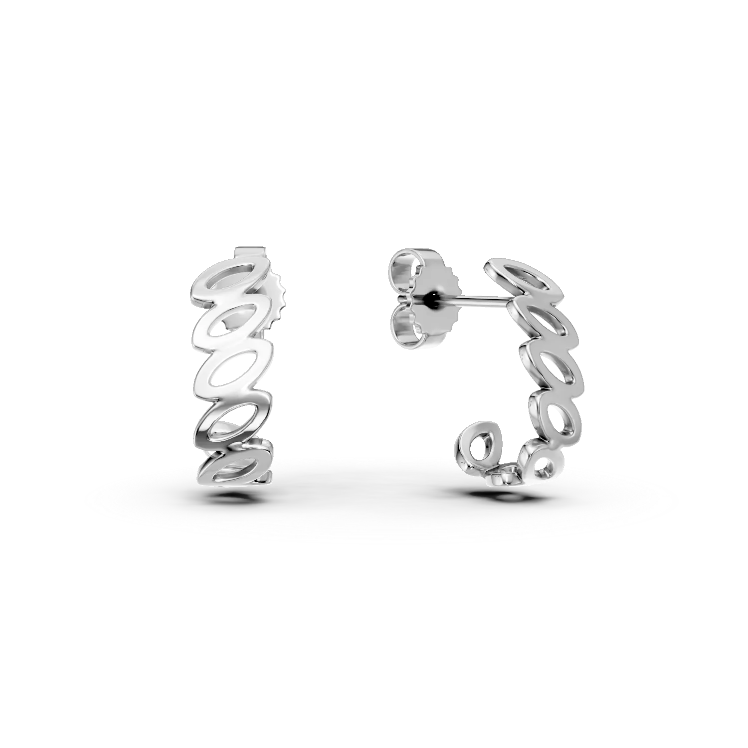 Paseste in lumea seducatoare a bijuteriilor pregatite sa cucereasca inimi si priviri. Perechea de cercei geometrici cu surub din aur alb defineste un mod inedit de a impartasi pasiunea pentru eleganta. Poarta accesoriile care iti evidentiaza latura sofisticata.