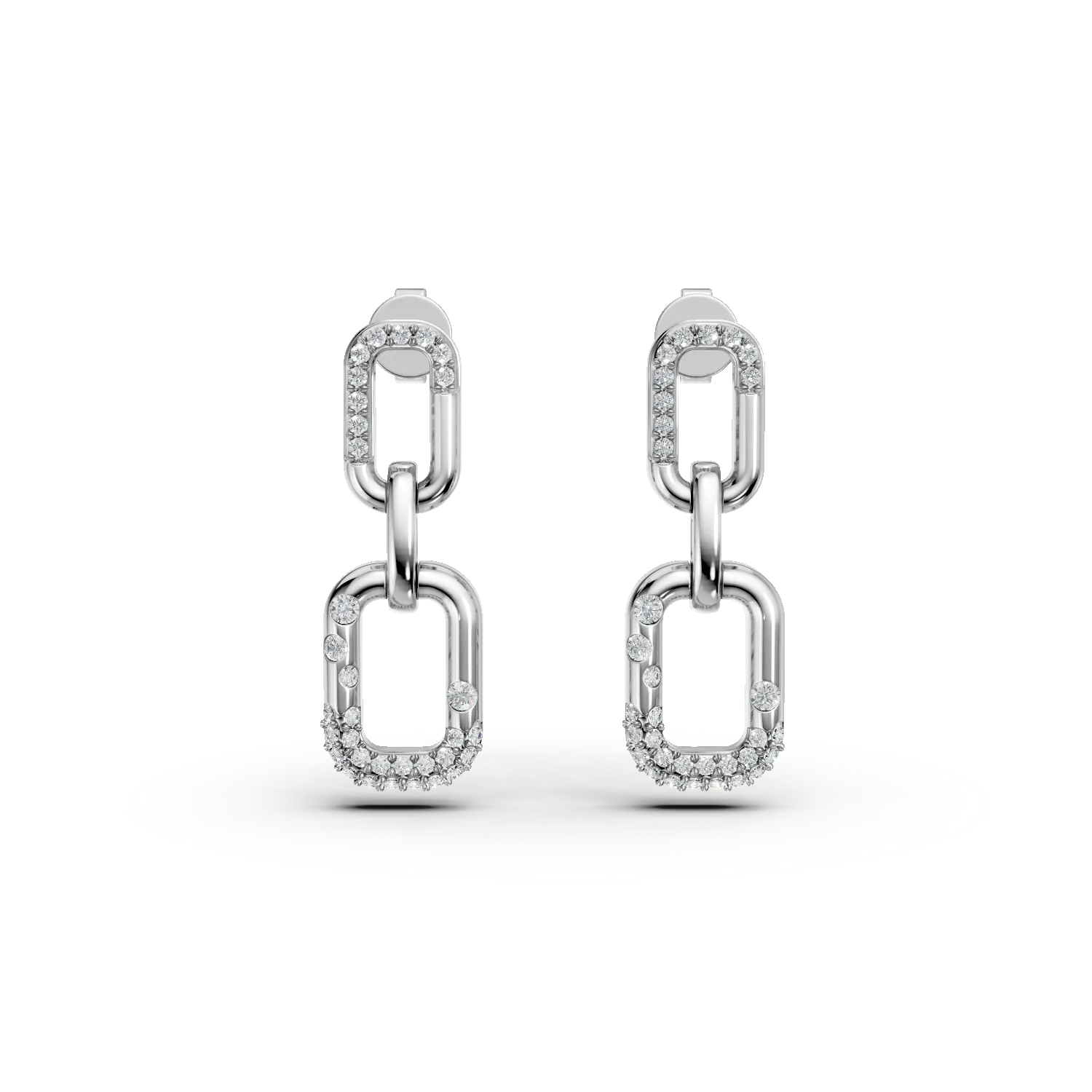 Cercei geometrici din aur alb cu diamante de 0.2ct