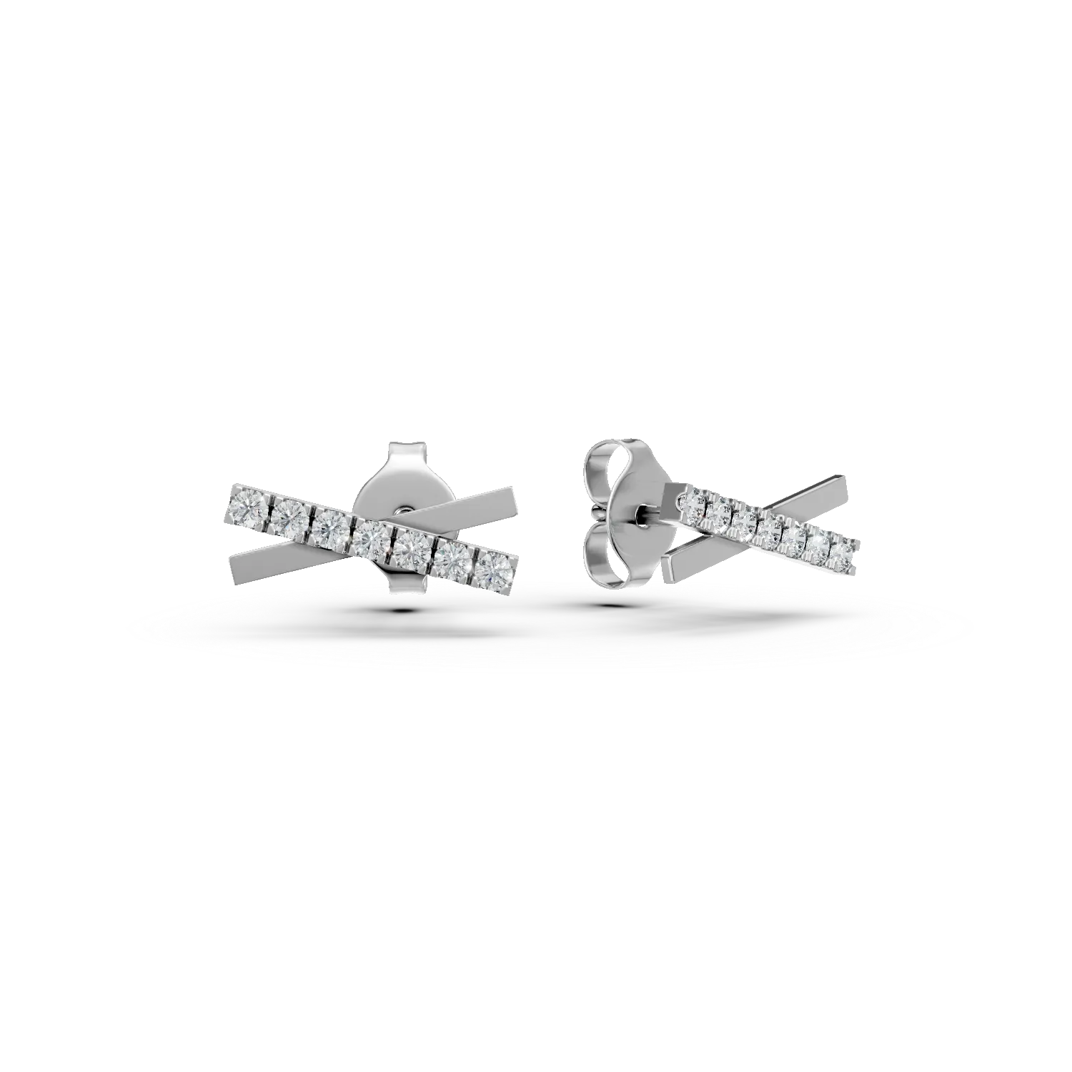 Cercei geometrici din aur alb cu diamante de 0.2ct