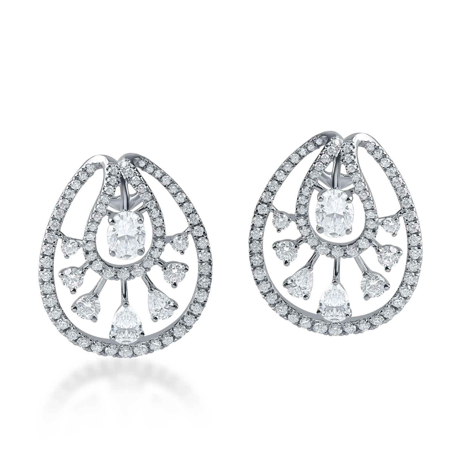 Cercei geometrici din aur alb cu diamante princess, ovale si rotunde de 1.36ct