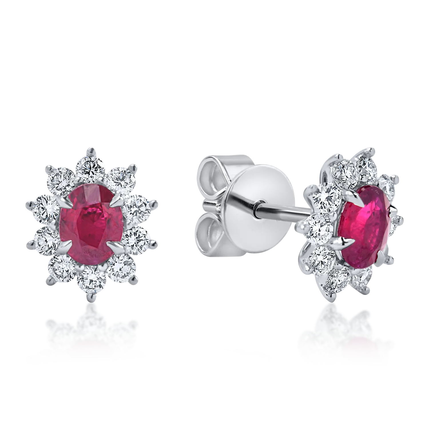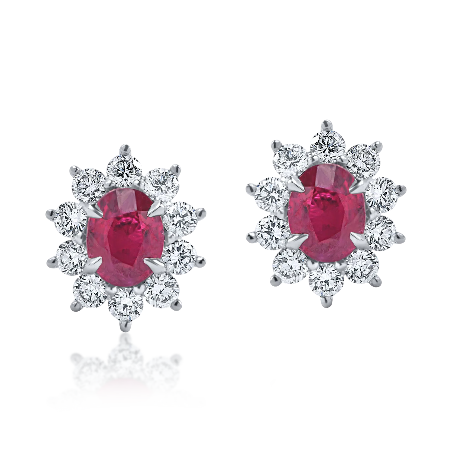 Cercei geometrici din aur alb cu rubine ovale si diamante de 1.3ct