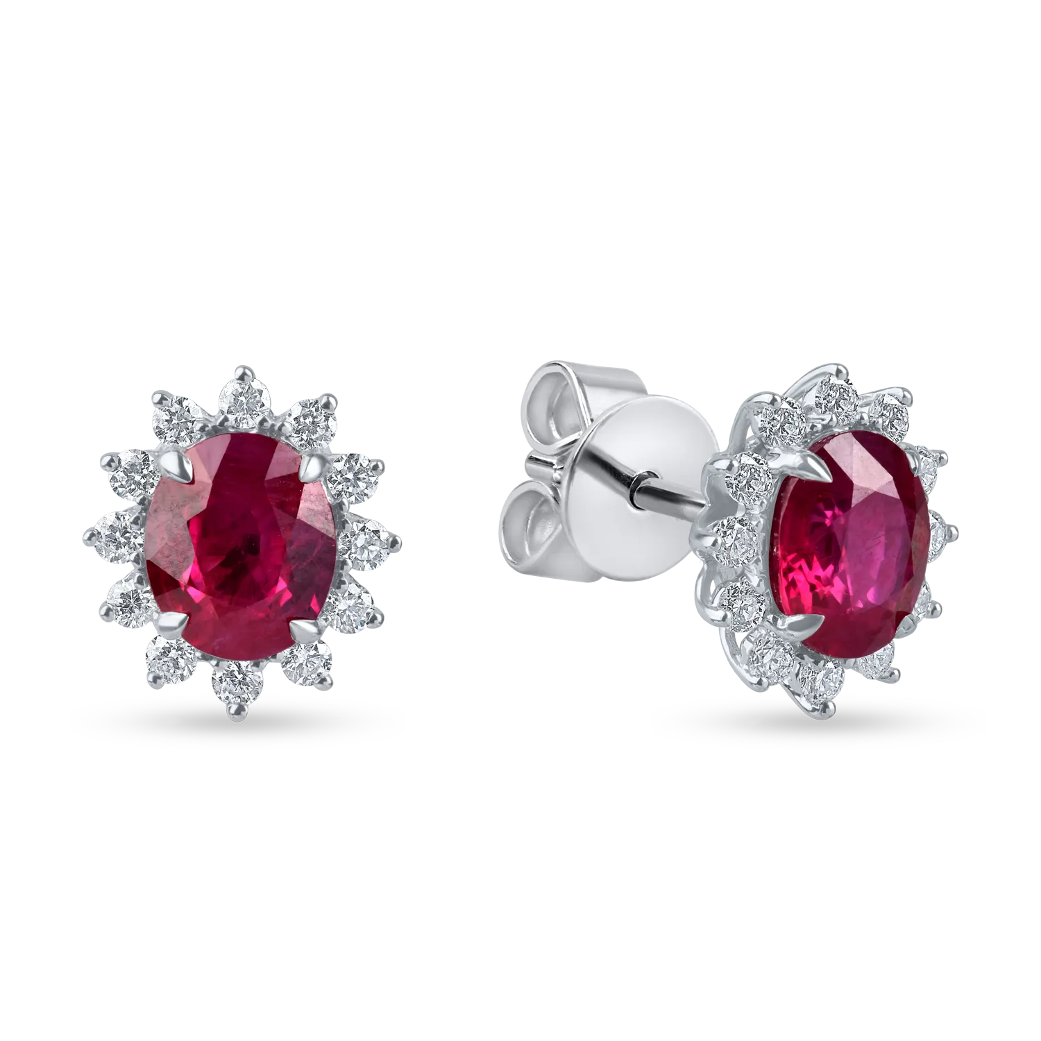 Cercei geometrici din aur alb cu rubine ovale si diamante de 1.8ct