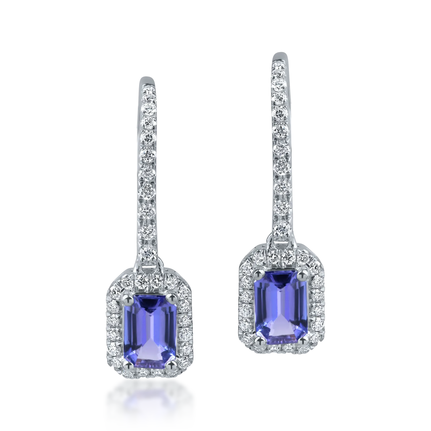 Cercei geometrici din aur alb cu tanzanite rectangulare de 1.2ct si diamante de 0.3ct