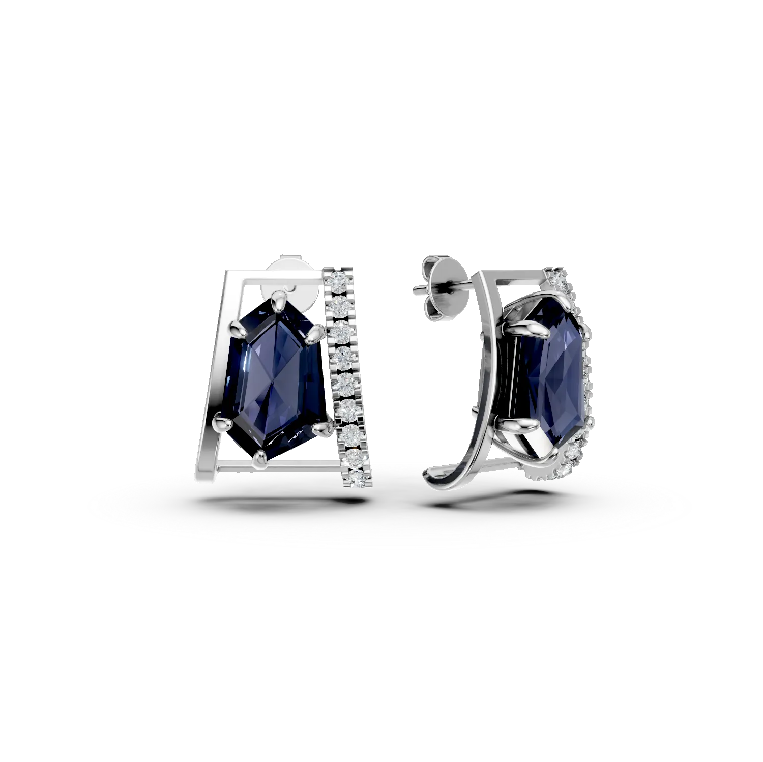 Cercei geometrici din aur alb cu topaze london blue hexagonale de 4.06ct si diamante de 0.2ct