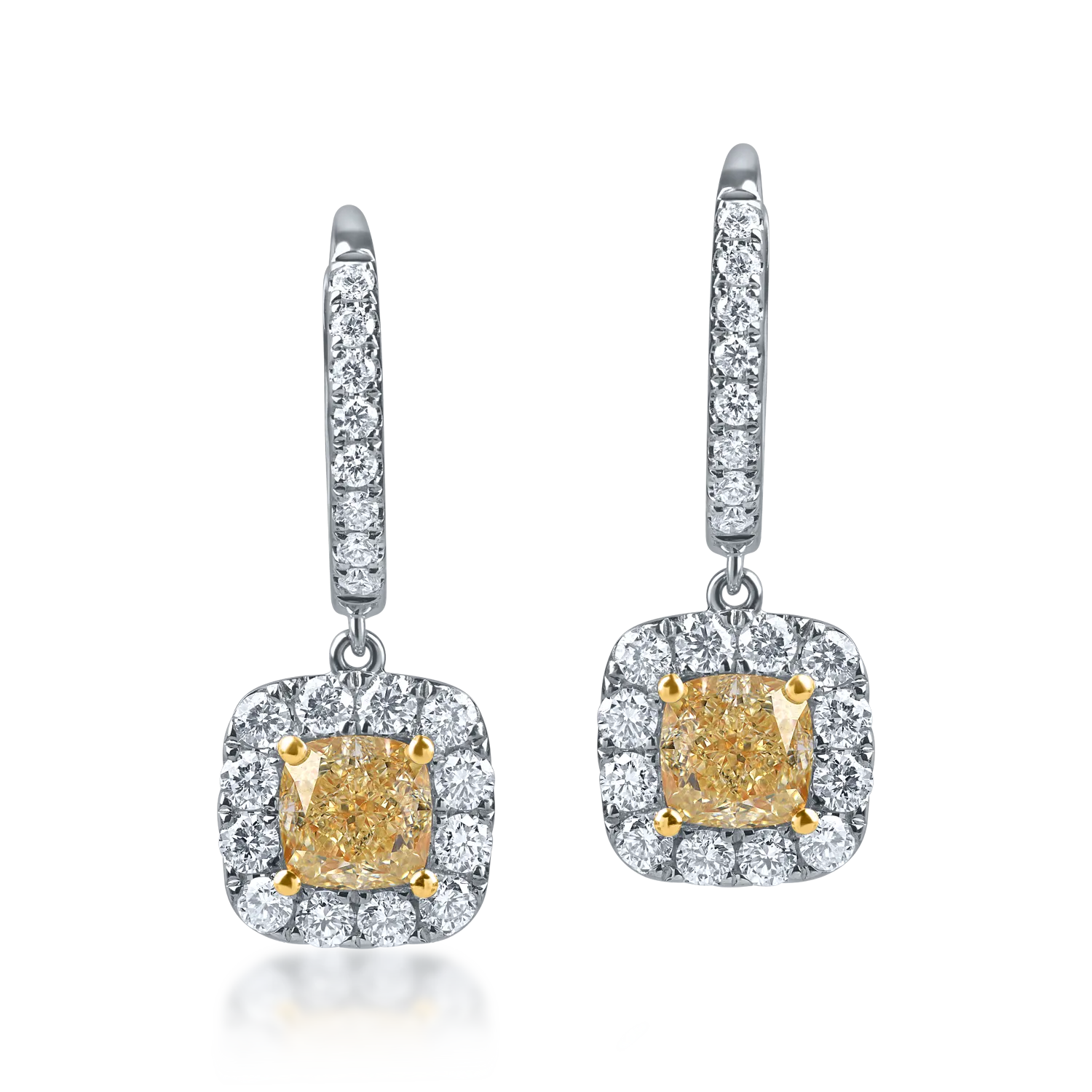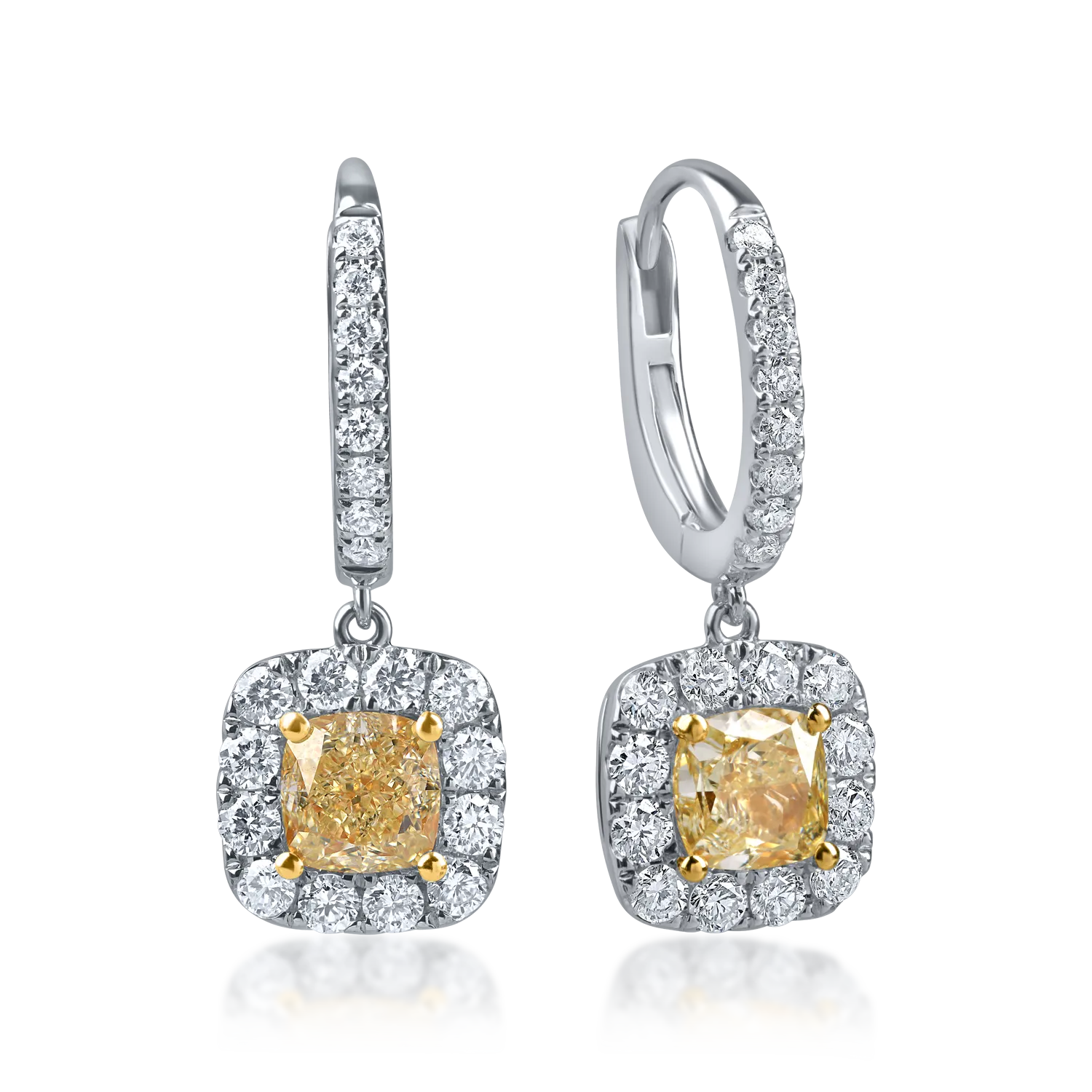 Cercei geometrici din aur alb-galben cu diamante galbene cushion si incolore de 2.1ct