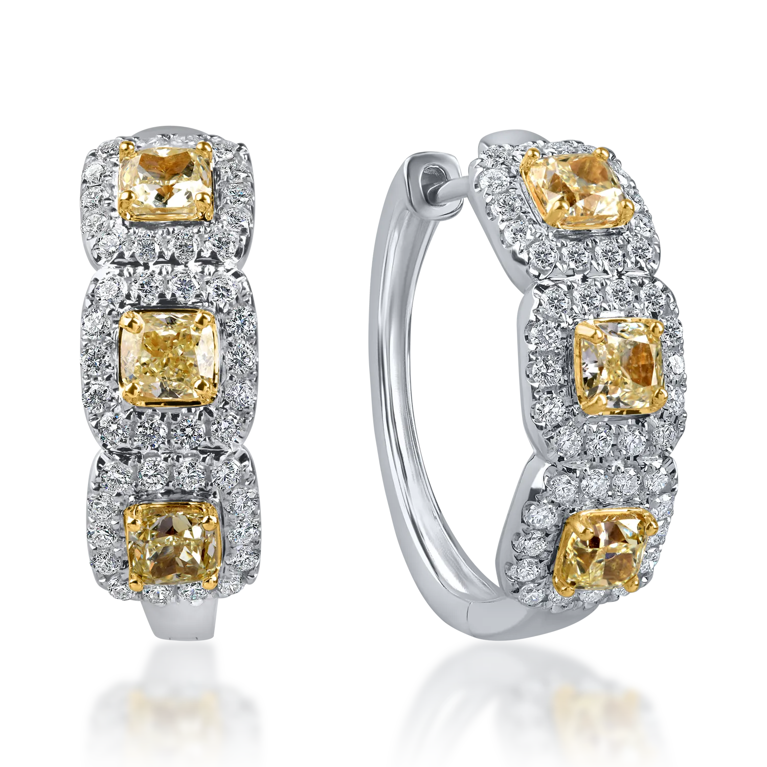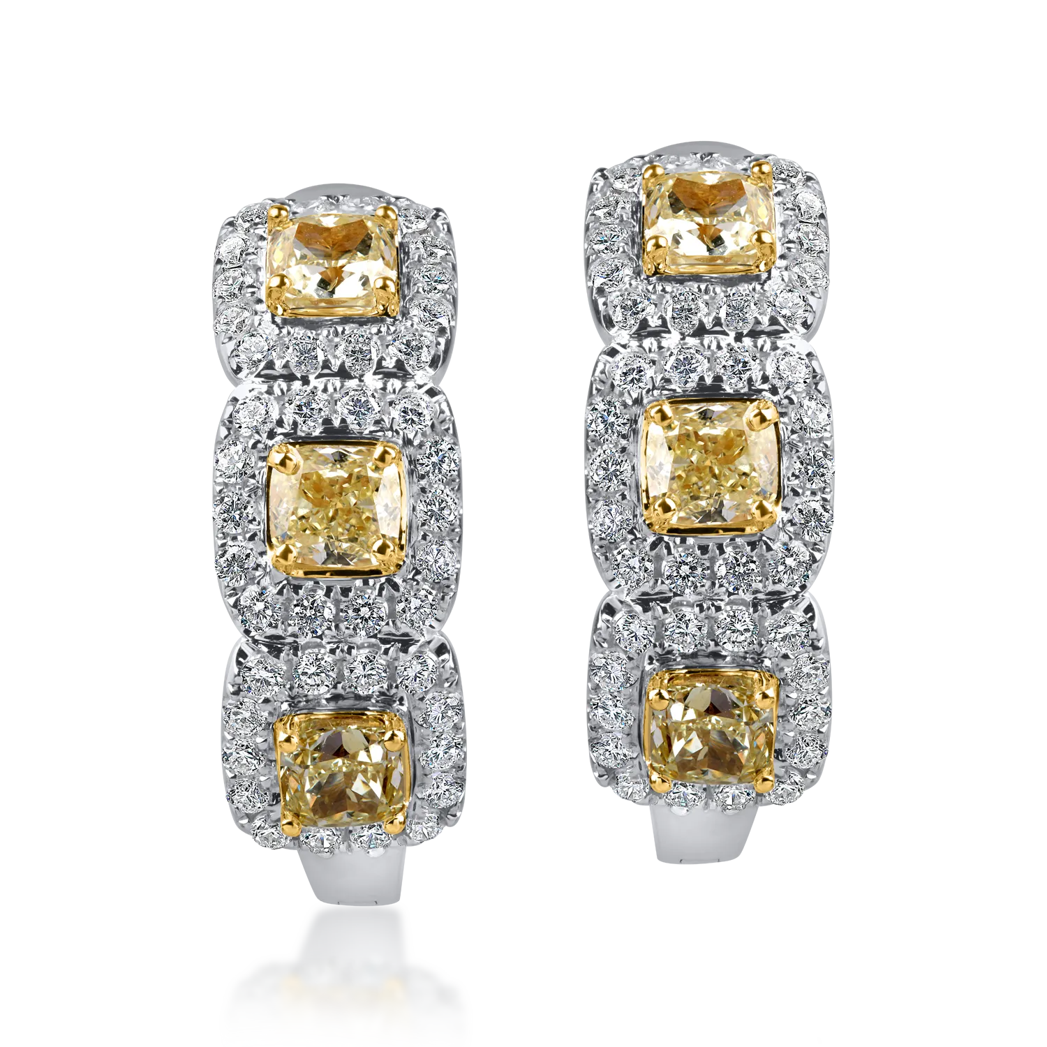 Cercei geometrici din aur alb-galben cu diamante galbene square si incolore rotunde de 2.2ct