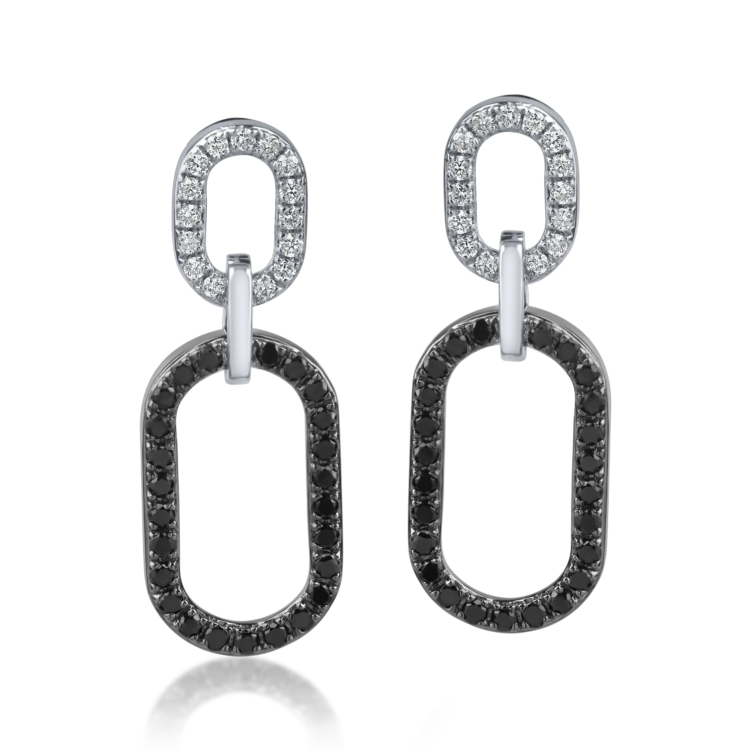 Cercei geometrici din aur alb-negru cu diamante negre si incolore de 0.5ct