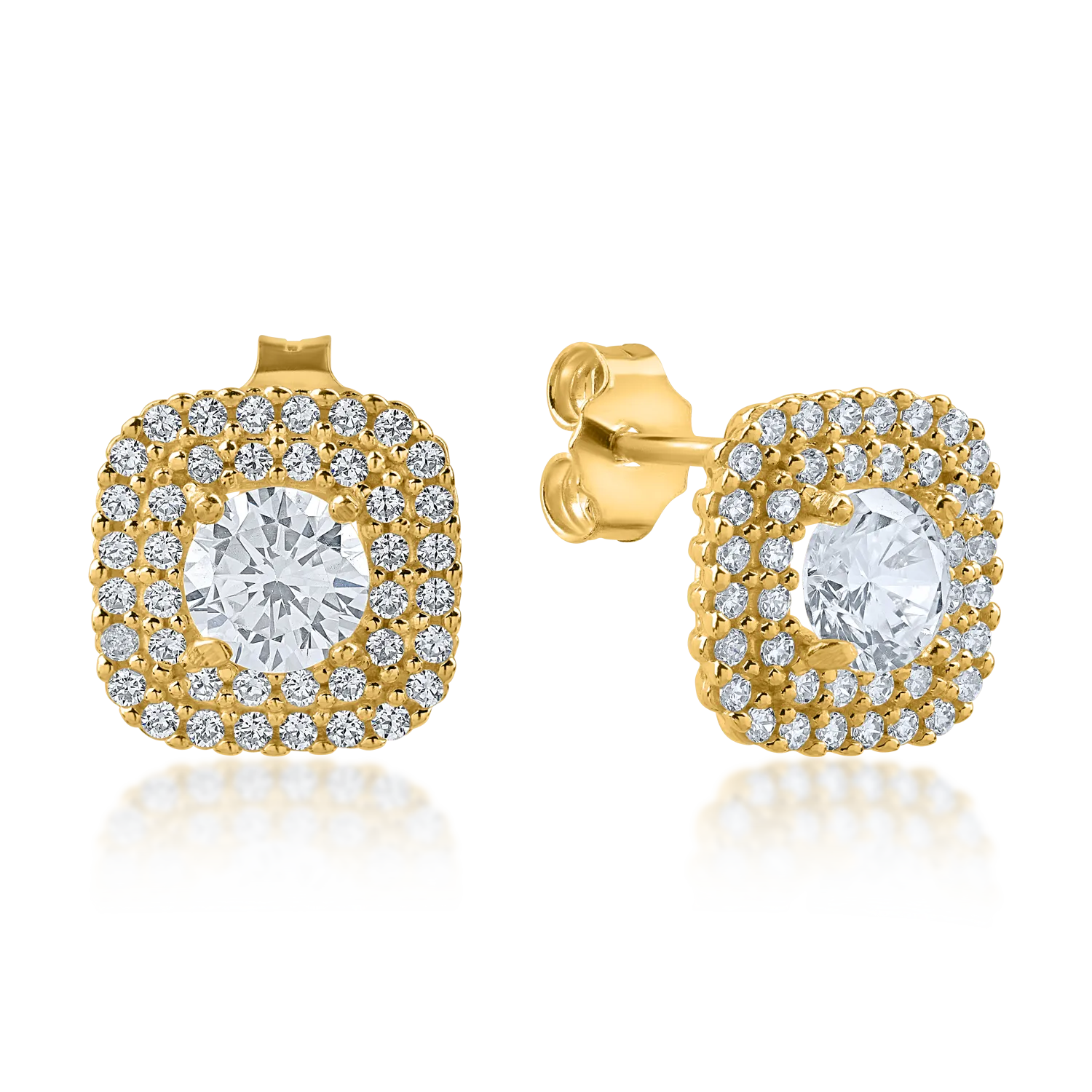 Uneori, cele mai valoroase cadouri sunt cele pe care le oferi chiar tu. Cu un design sofisticat, acesti cercei geometrici din aur galben cu zirconii devin elementul esential al unei aparitii rafinate. O emotie subtila, imortalizata intr-o bijuterie delicata. Un echilibru perfect intre contemporan si traditional.