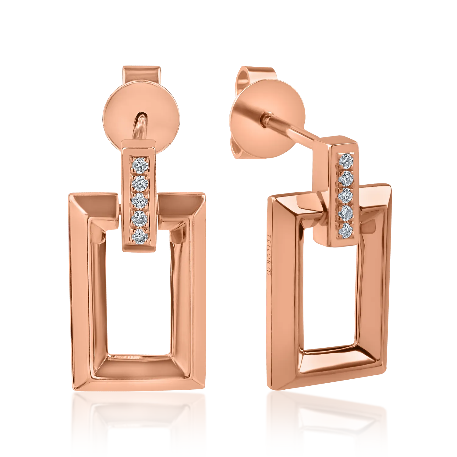 Cercei geometrici din aur roz cu diamante de 0.026ct