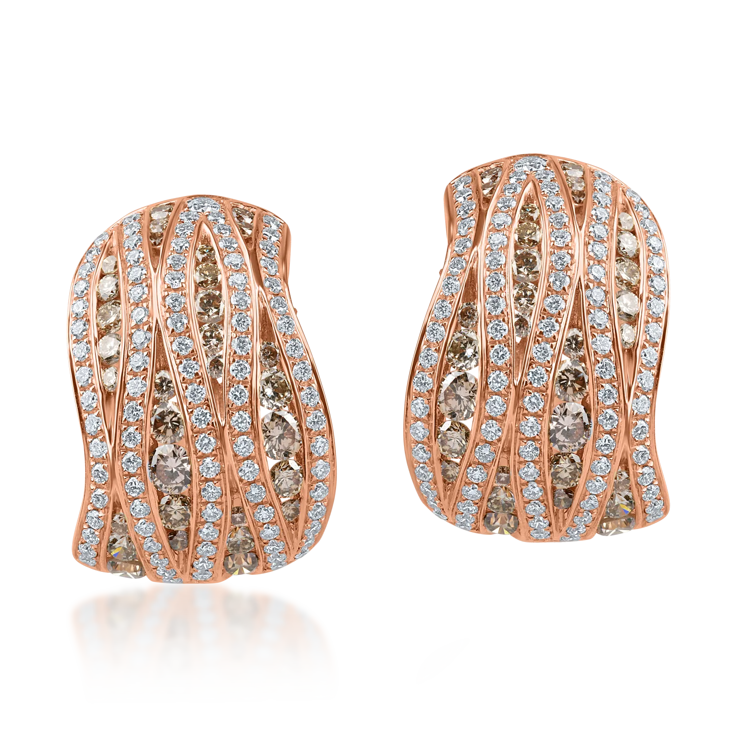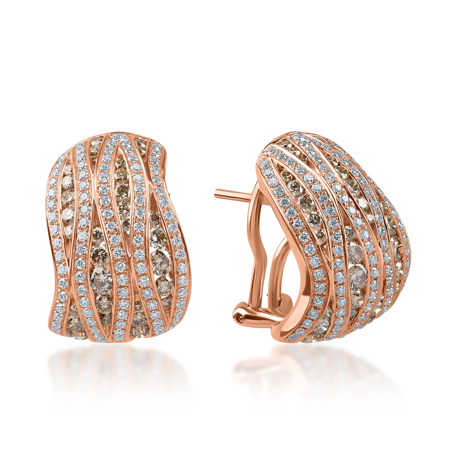 Cercei geometrici din aur roz cu diamante maro si incolore de 2.12ct