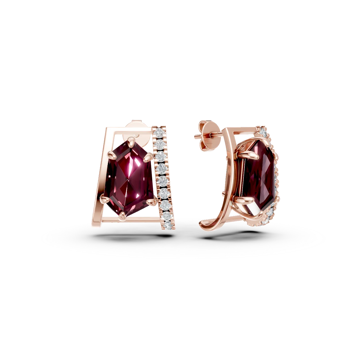 Cercei geometrici din aur roz cu granate de 4.3ct si diamante de 0.2ct