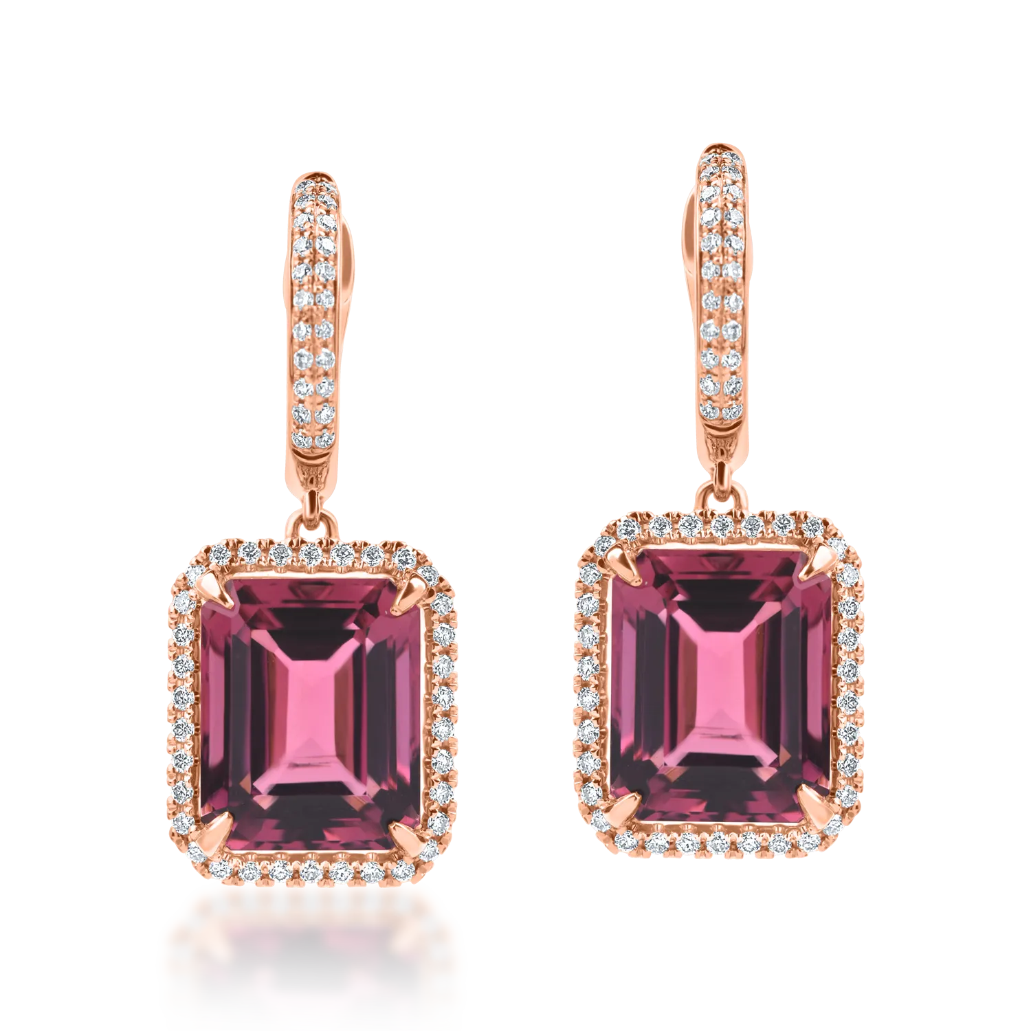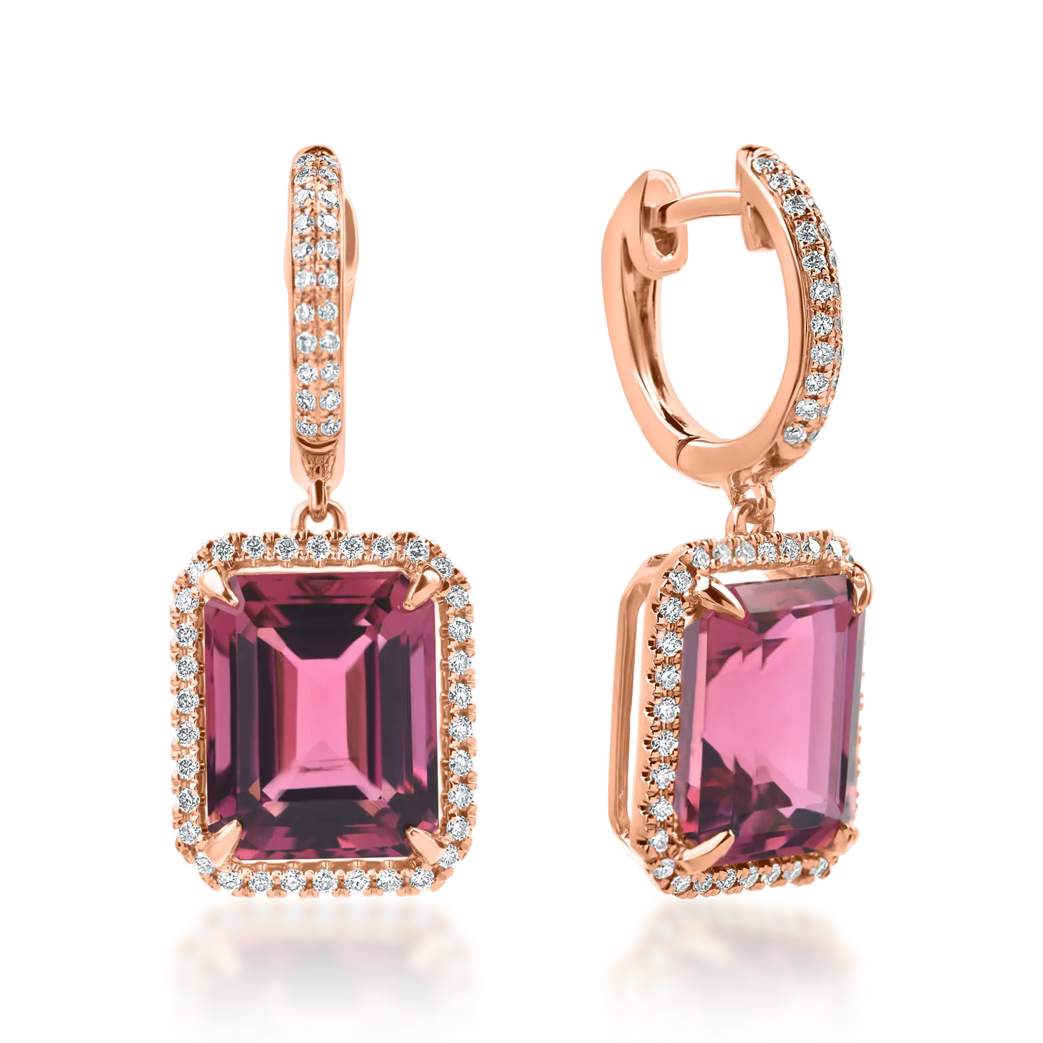 Cercei geometrici din aur roz cu turmaline roz octogonale de 6.9ct si diamante de 0.3ct