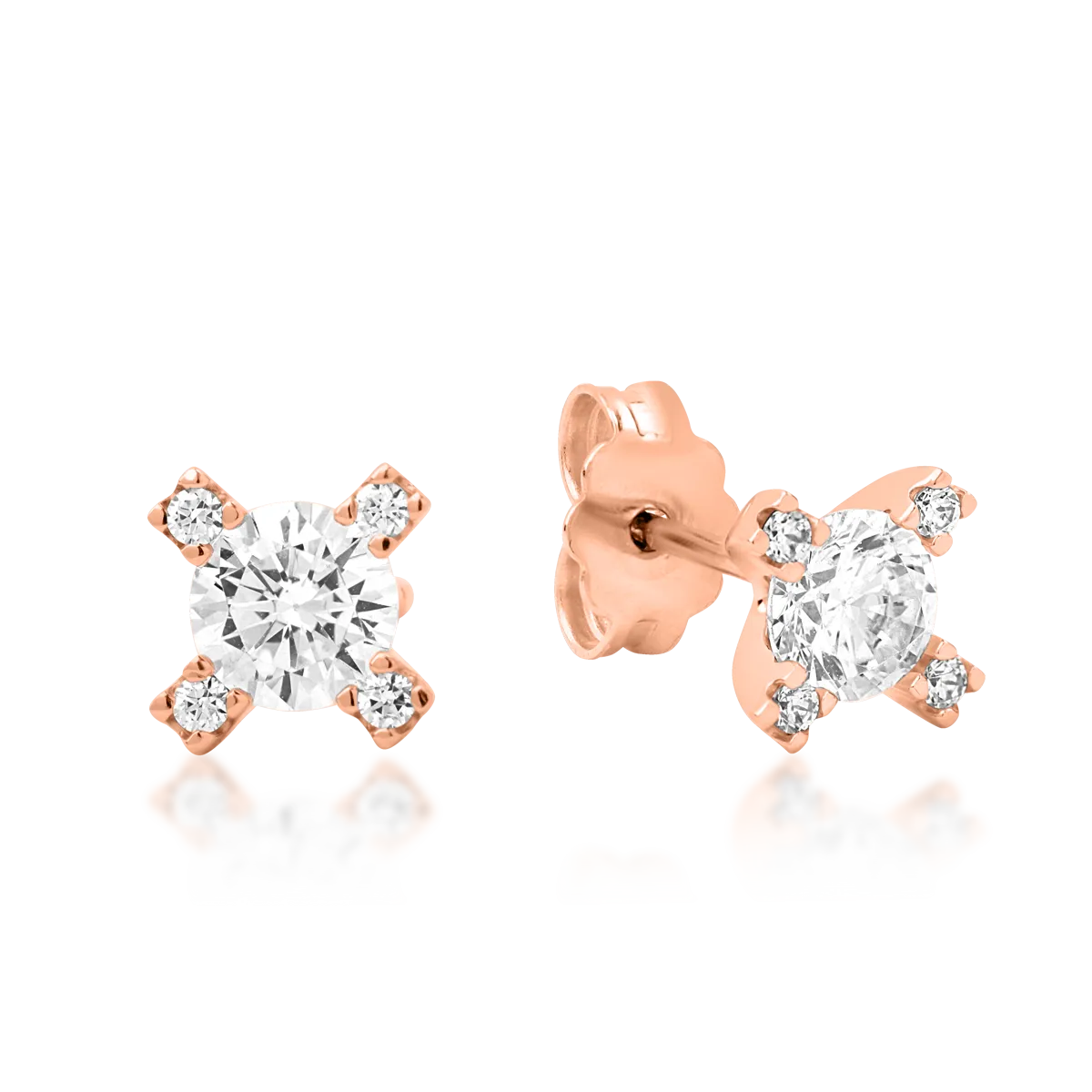 Poarta bijuteriile care iti dau incredere in tine. Cerceii geometrici din aur roz cu zirconia stralucesc intr-un joc hipnotizant de nuante, intensificat de fiecare raza de lumina. TEILOR – inspiratia ta in crearea unei aparitii memorabile.