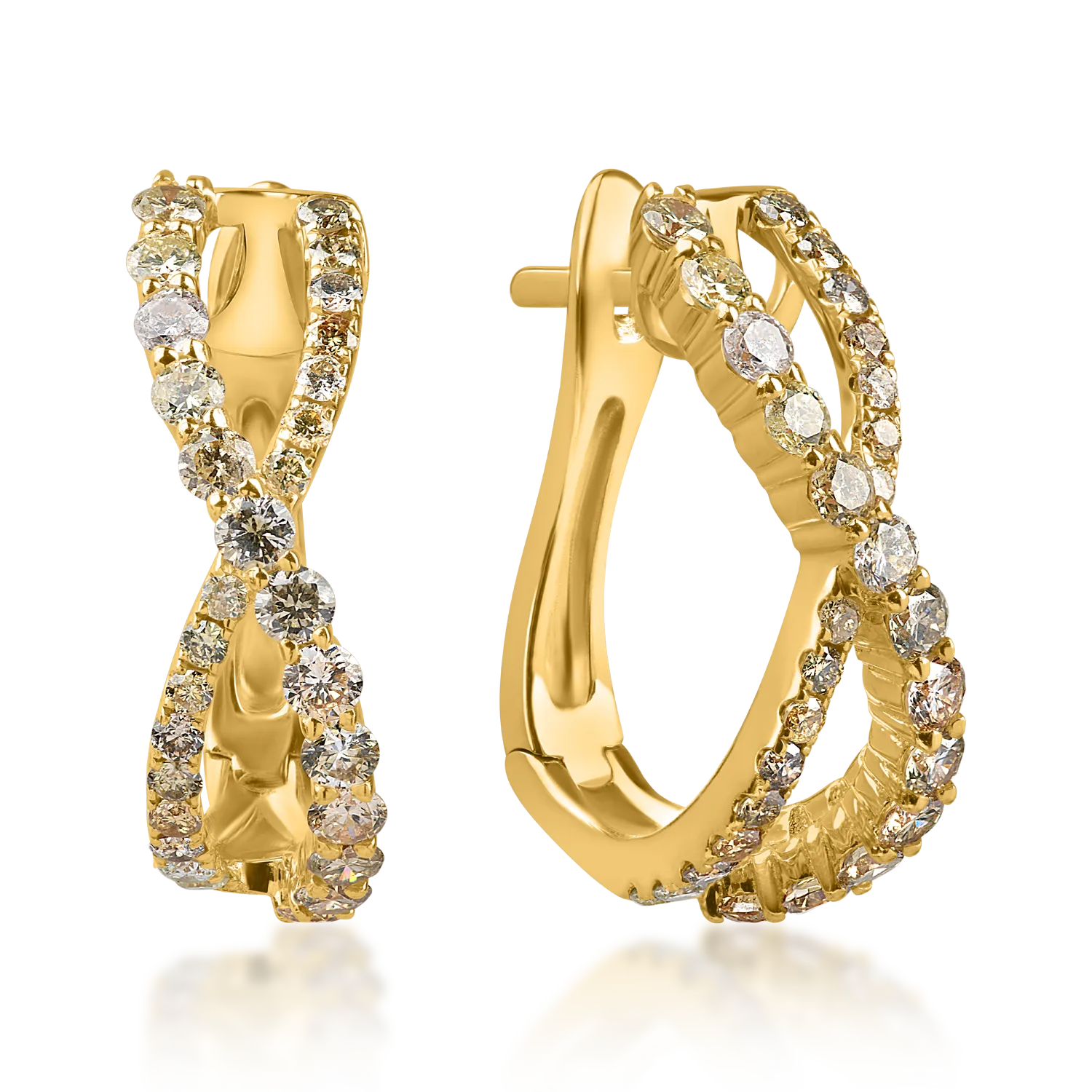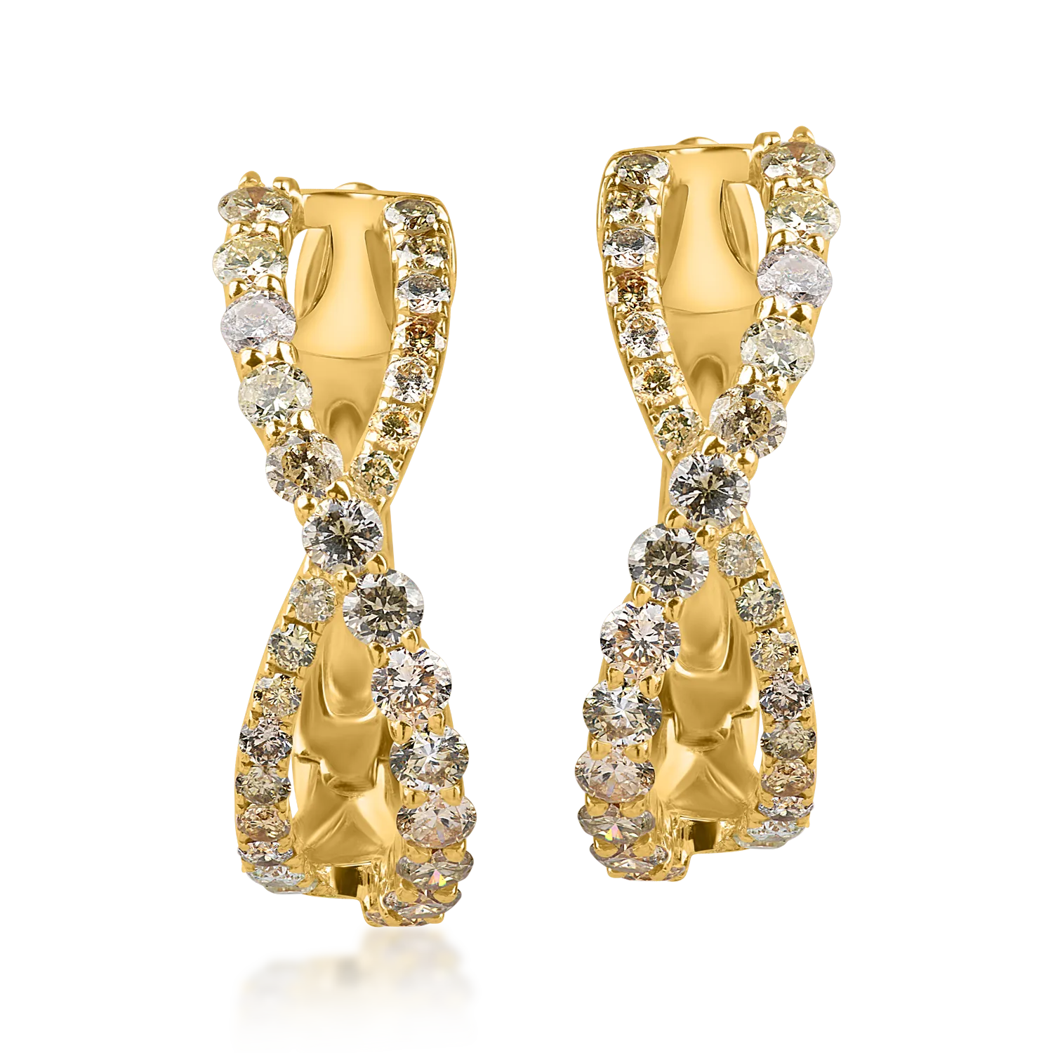 Cercei hoop din aur galben cu diamante multicolore de 1.4ct