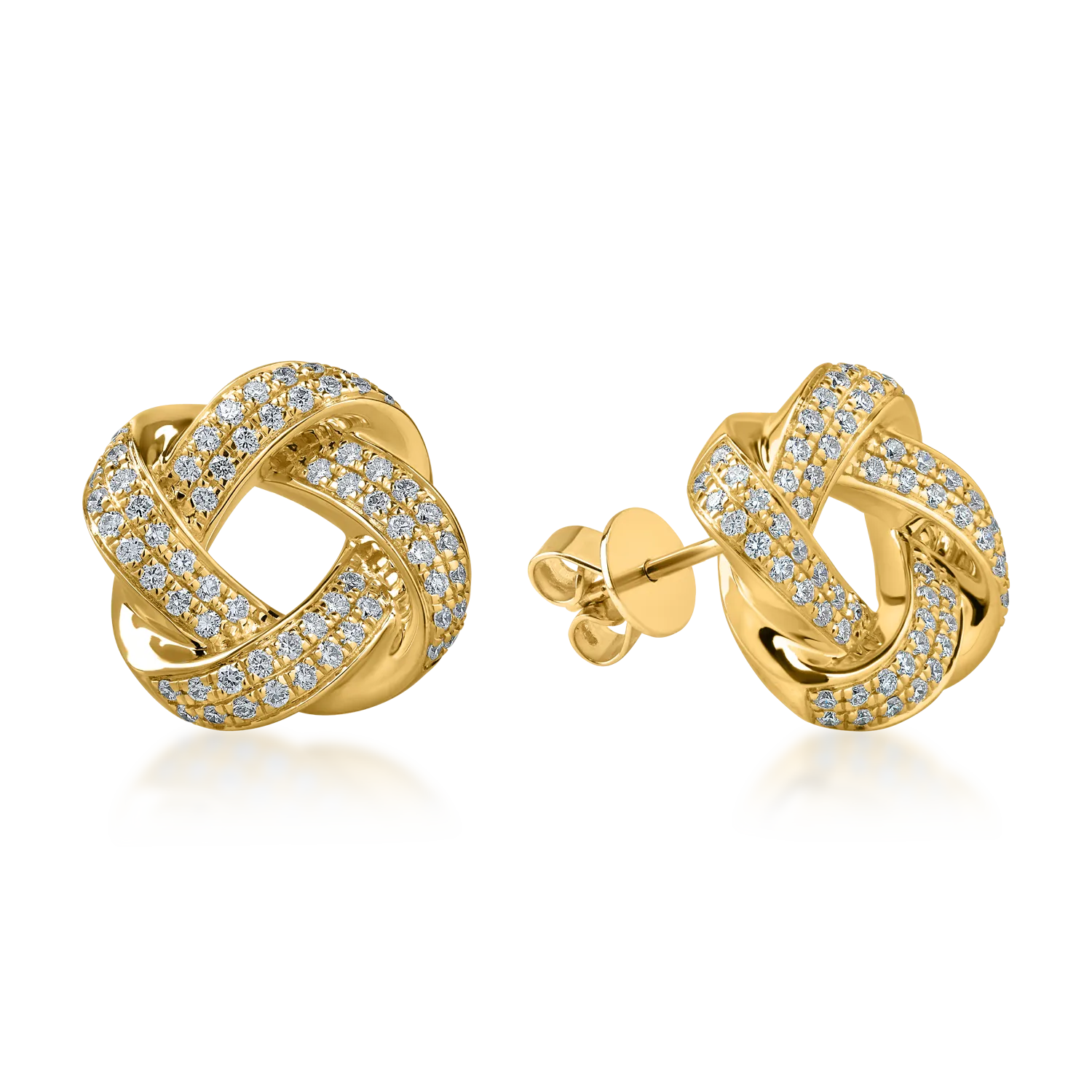 Cercei impletiti din aur galben cu diamante de 0.6ct