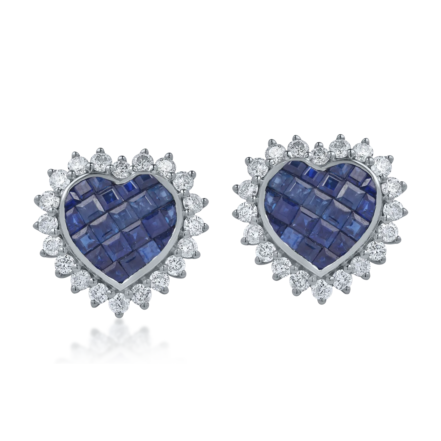 Cercei inima din aur alb cu safire square de 2.56ct si diamante de 1.15ct