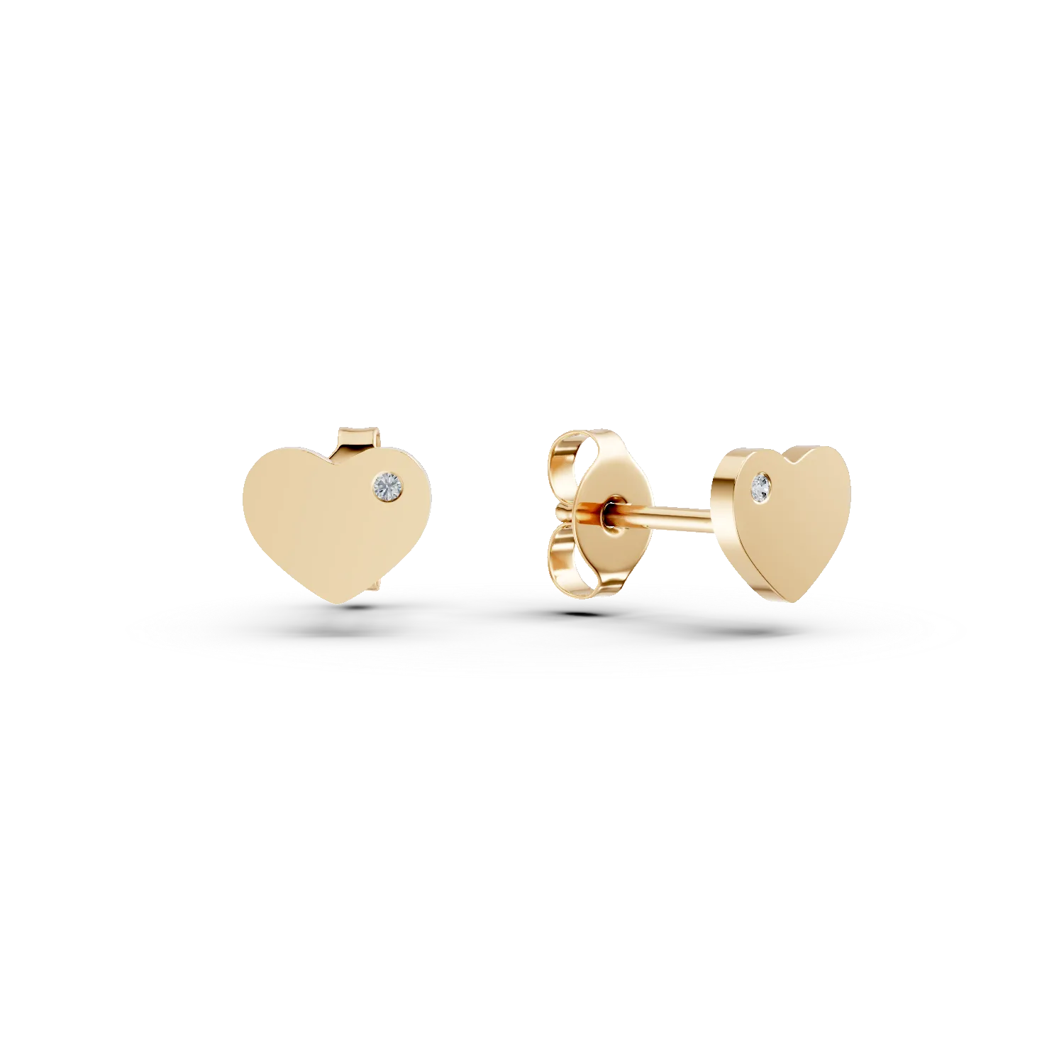 Fii mereu eleganta cu acesti cercei inima din aur galben cu diamante de 0.01ct. Aurul galben si delicatetea diamantelor creeaza un accesoriu perfect pentru un stil sofisticat. Evidentiaza-ti feminitatea cu bijuteriile TEILOR.