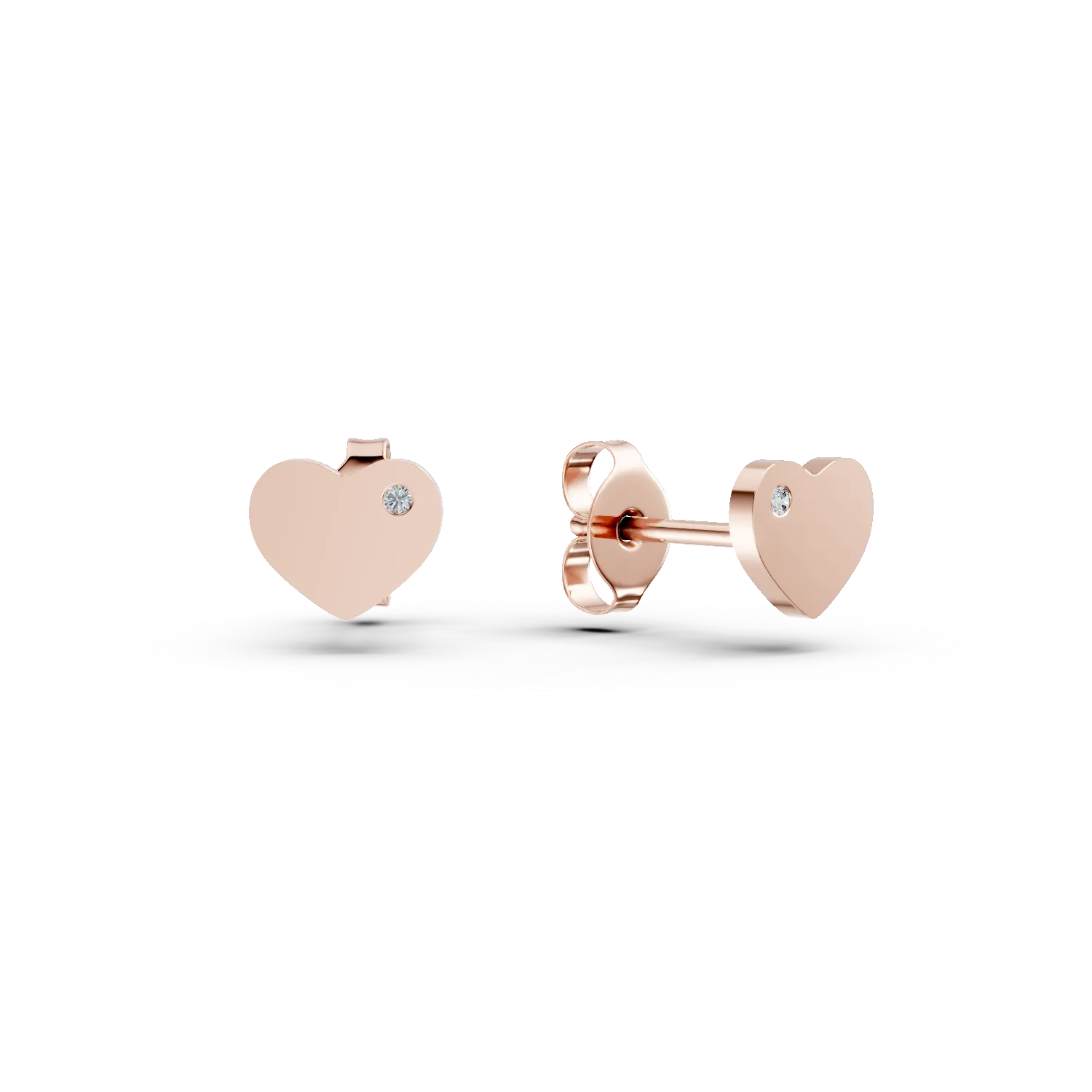 Imbratiseaza eleganta subtila cu acesti cercei inima din aur roz cu diamante de 0.01ct. Stralucirea delicata a diamantelor si rafinamentul aurului roz aduc un plus de feminitate fiecarui look. Straluceste cu stil in fiecare zi cu TEILOR.