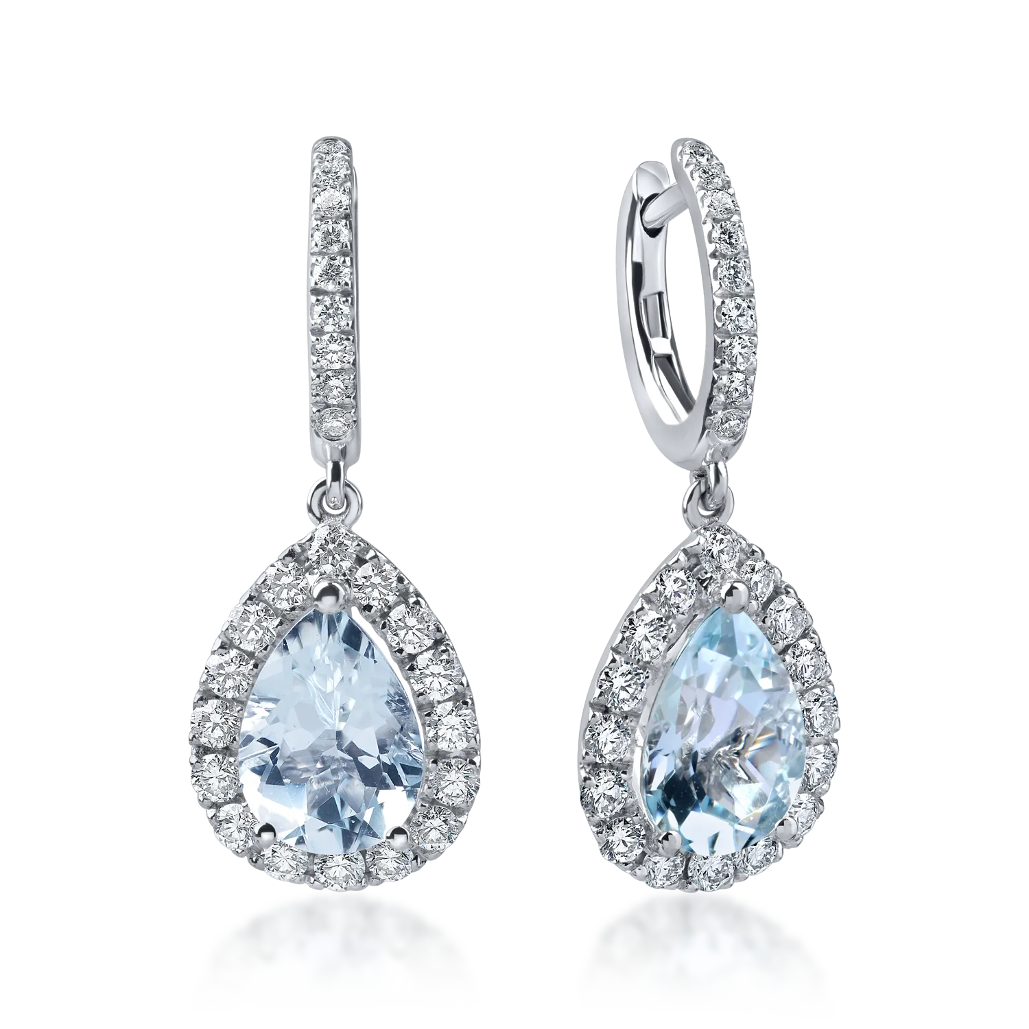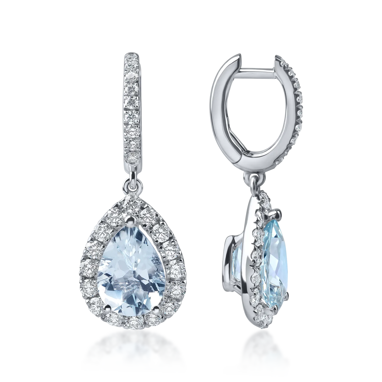 Cercei lacrima din aur alb cu acvamarine pear de 3.3ct si diamante de 1ct