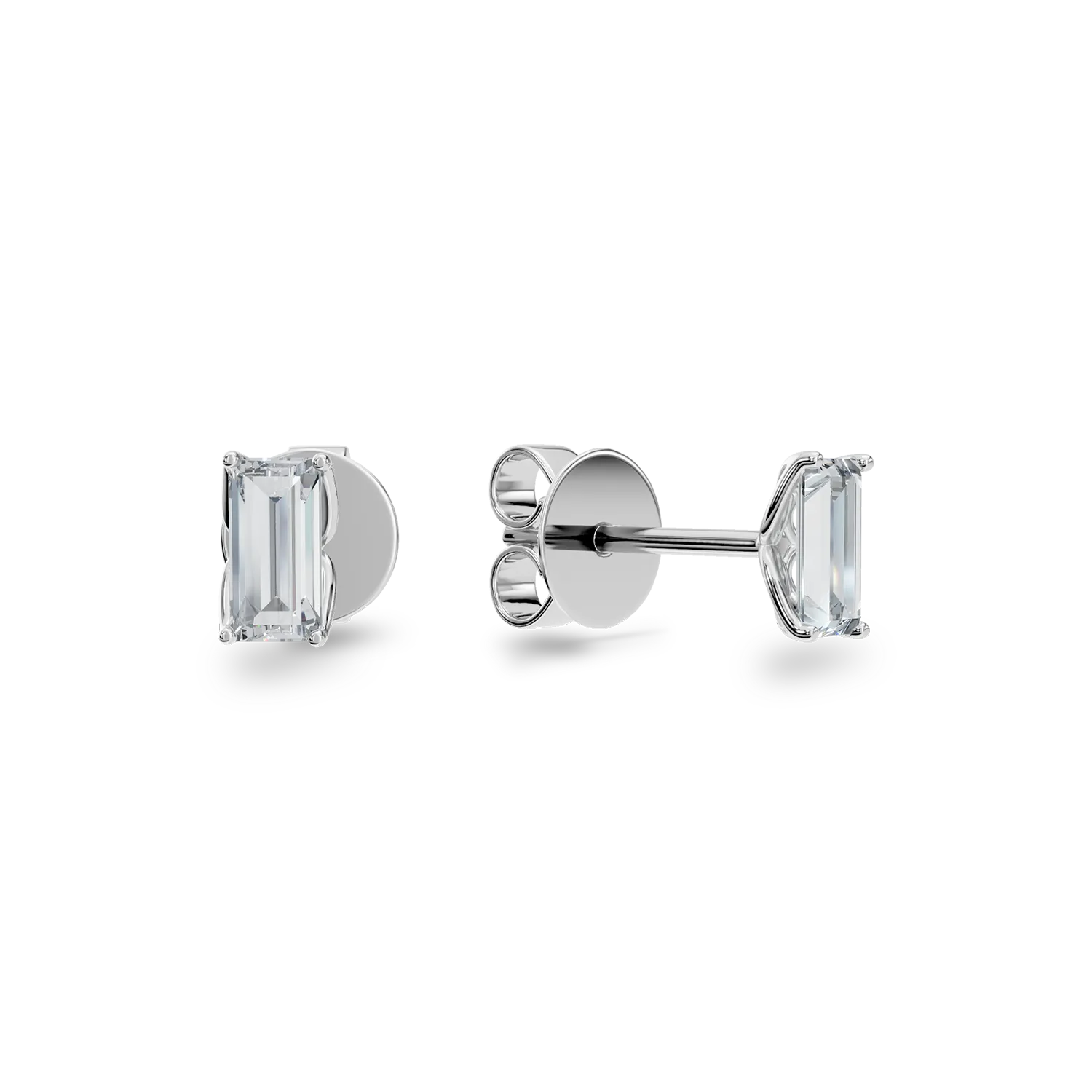 Cercei Lotus din aur alb cu diamante solitaire emerald de 1.04ct create in laborator