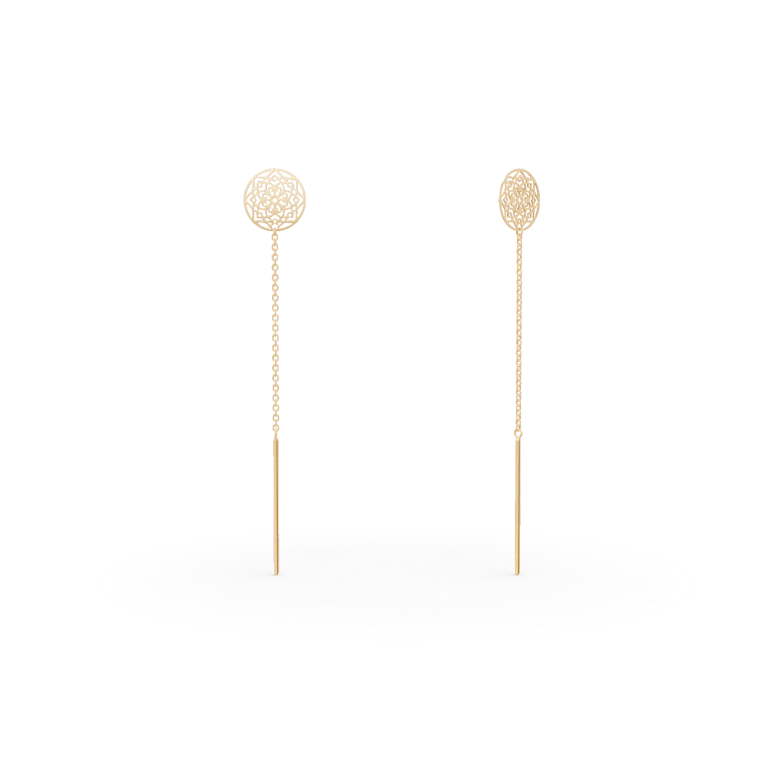 Bijuteria reprezinta alegerea ideala atunci cand doresti sa adaugi o nota proaspata tinutelor tale. Perechea de cercei lungi cu banuti din aur galben contureaza o simfonie de reflexii care captiveaza privirile. La fel ca tine. TEILOR – inspiratia ta in crearea unei aparitii memorabile.