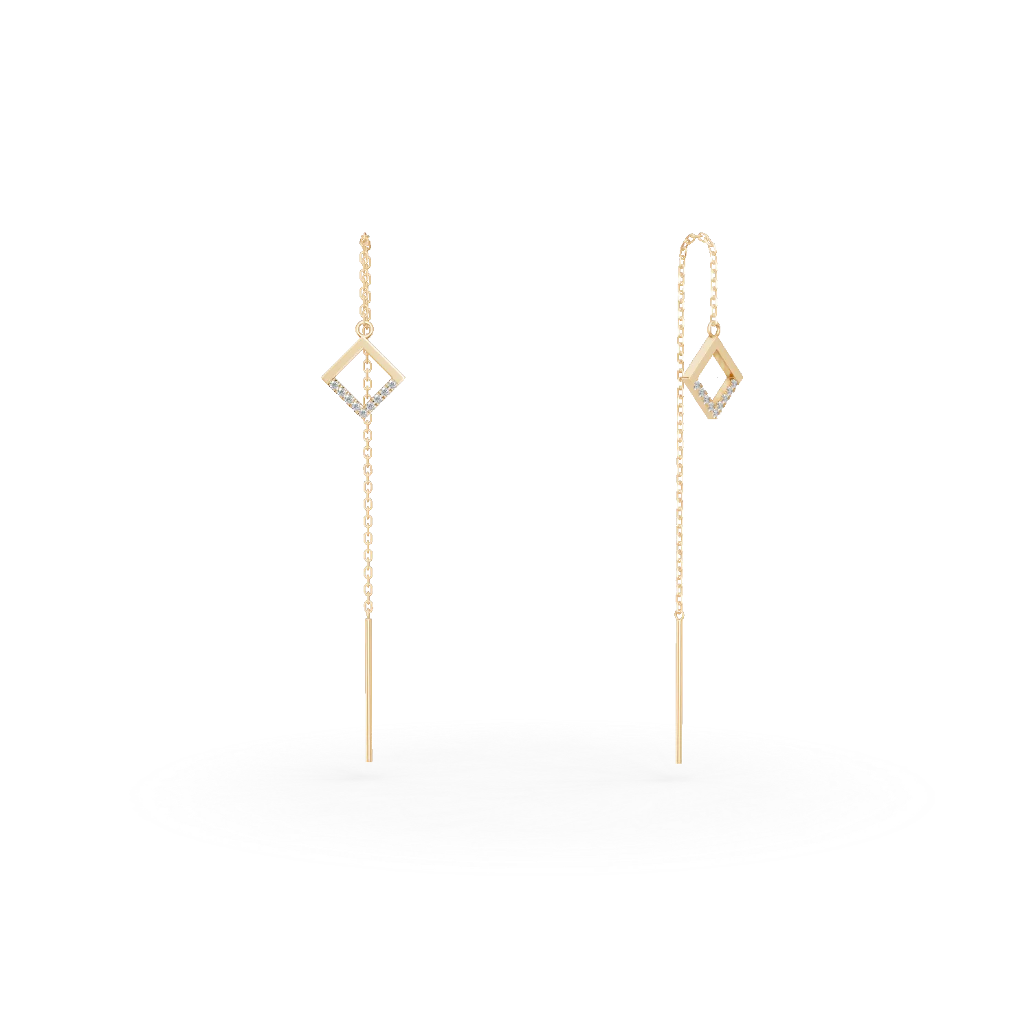 Poarta bijuteriile care dau contur emotiilor tale, care adauga prospetime prin nuantele lor vibrante. Autenticitatea designului si rafinamentul cerceilor lungi cu detalii geometrice din aur galben cu diamante de 0.05ct dau o nota eleganta oricarui stil. Lasa-i sa vorbeasca despre tine.