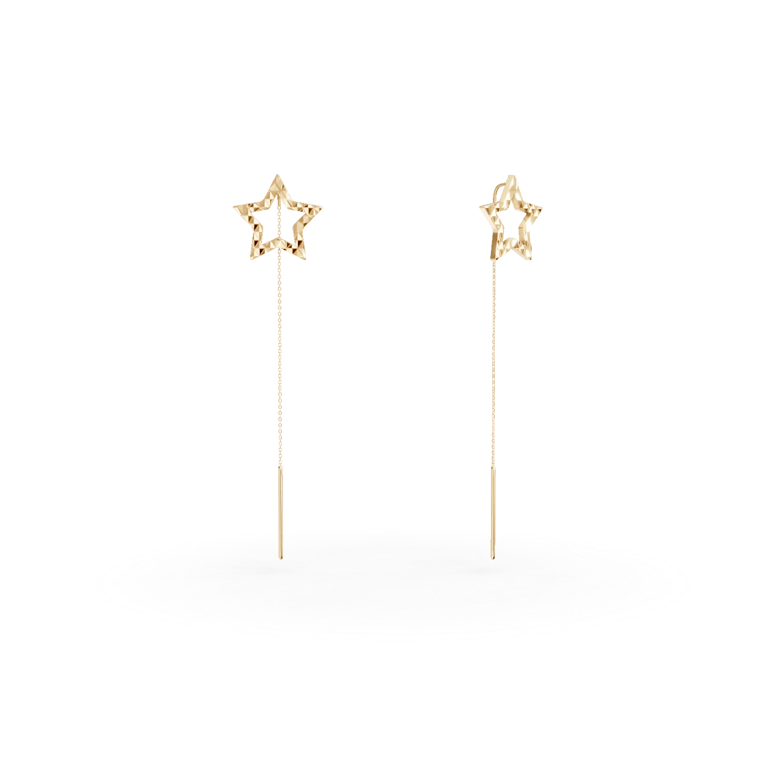 Intotdeauna originala, mereu surprinzatoare – TU. Autenticitatea designului si rafinamentul cerceilor lungi cu stelute din aur galben dau o nota eleganta oricarui stil. O piesa pe care iti doresti sa o porti iar si iar. Alege sa iti fie sursa de inspiratie.