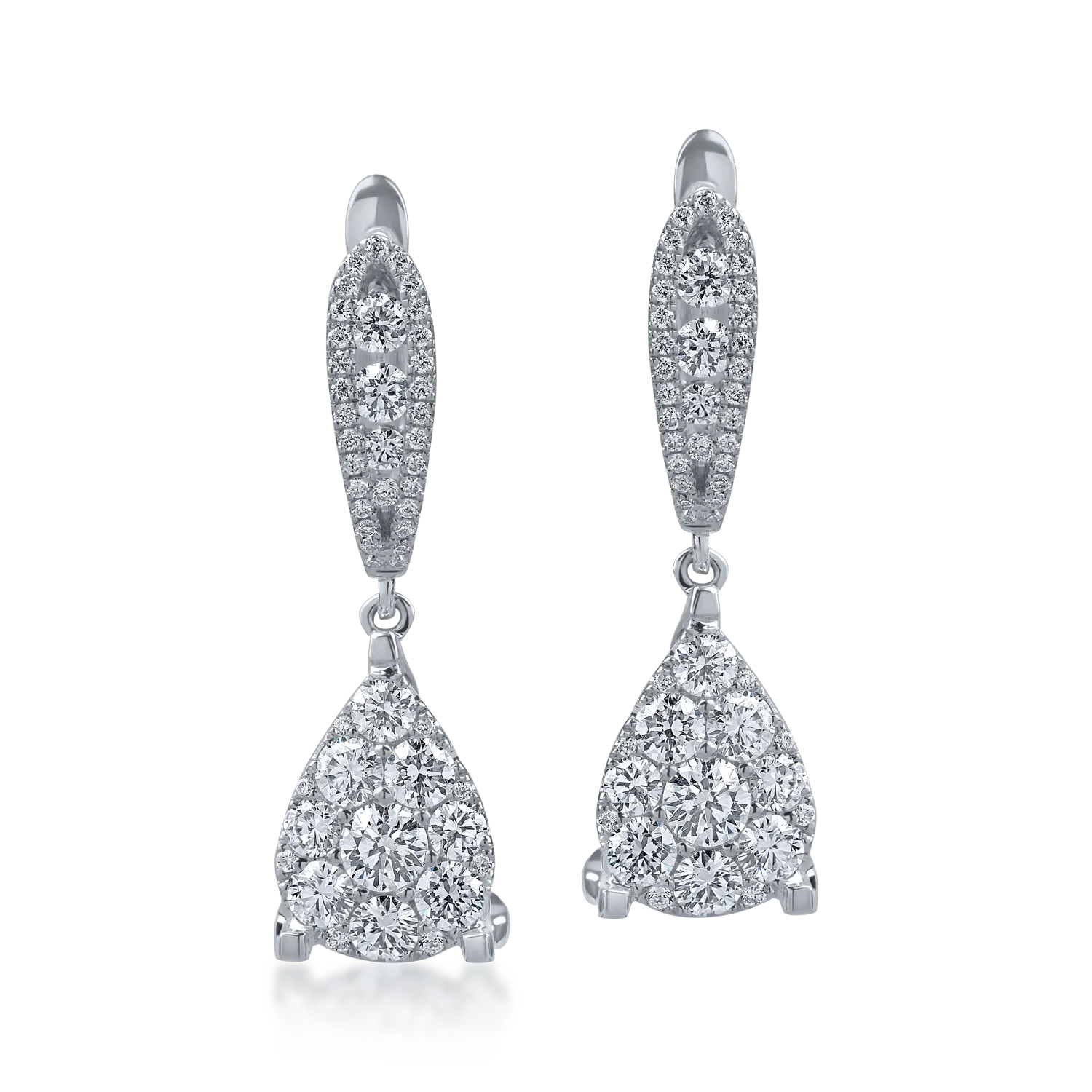 Cercei lungi din aur alb cu diamante de 1.18ct