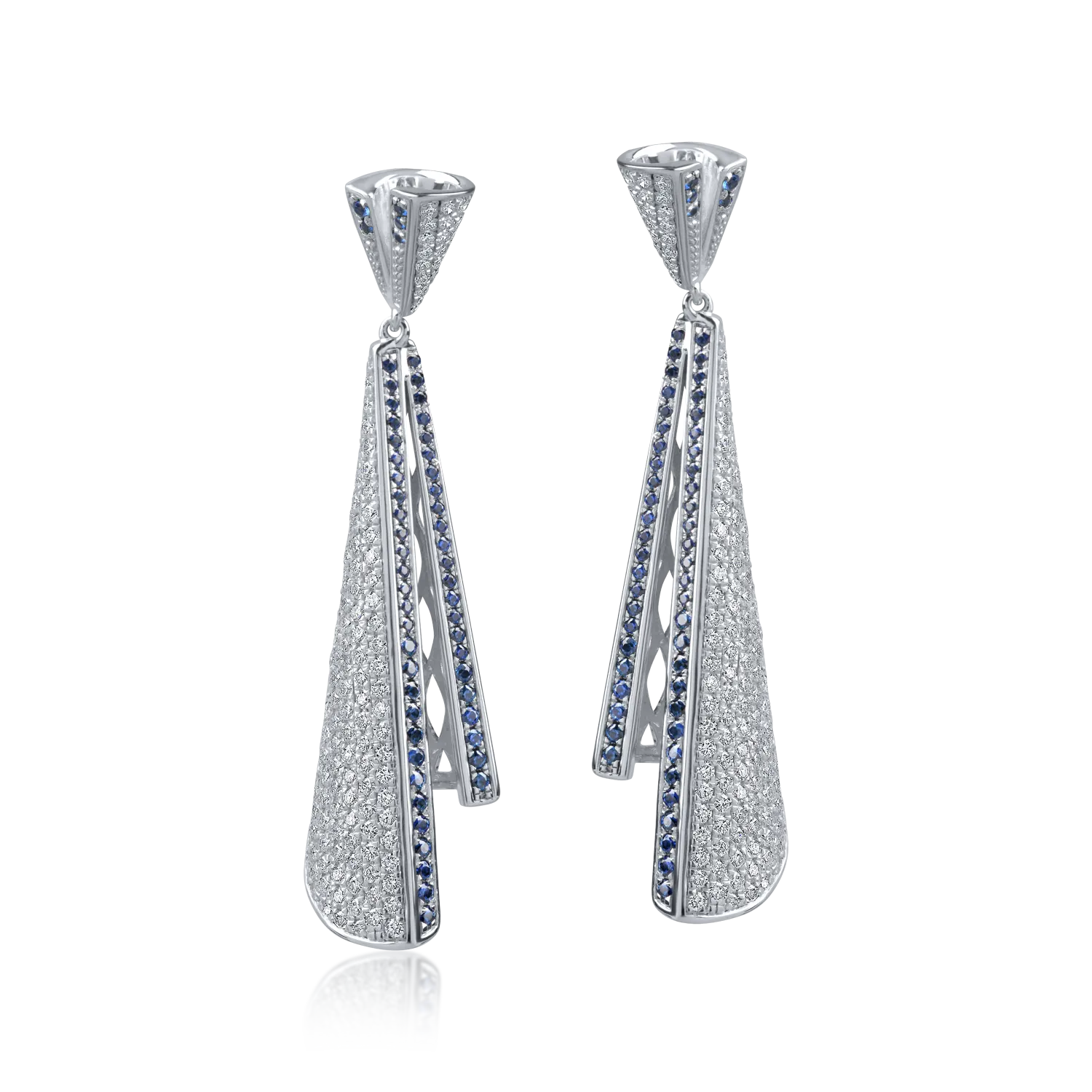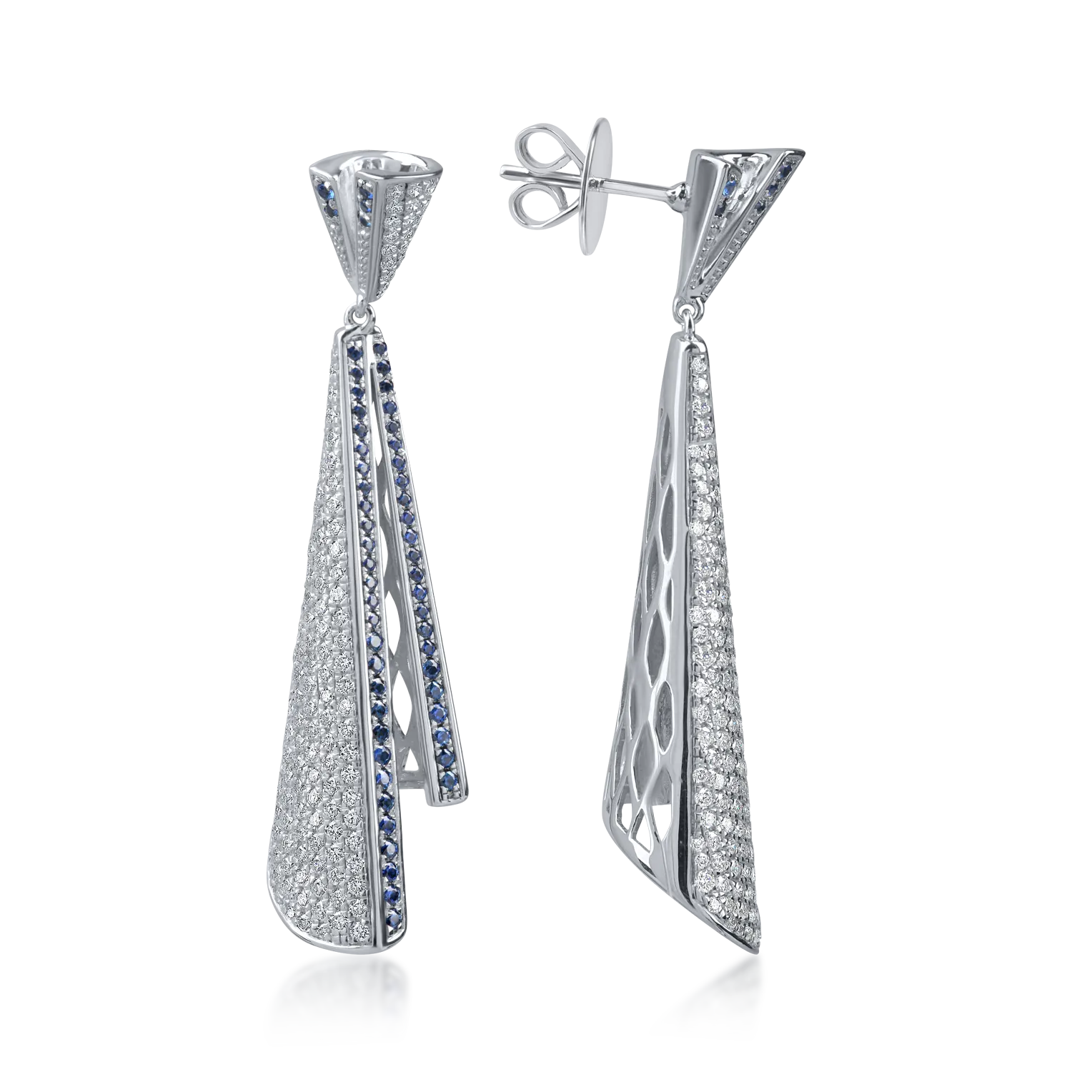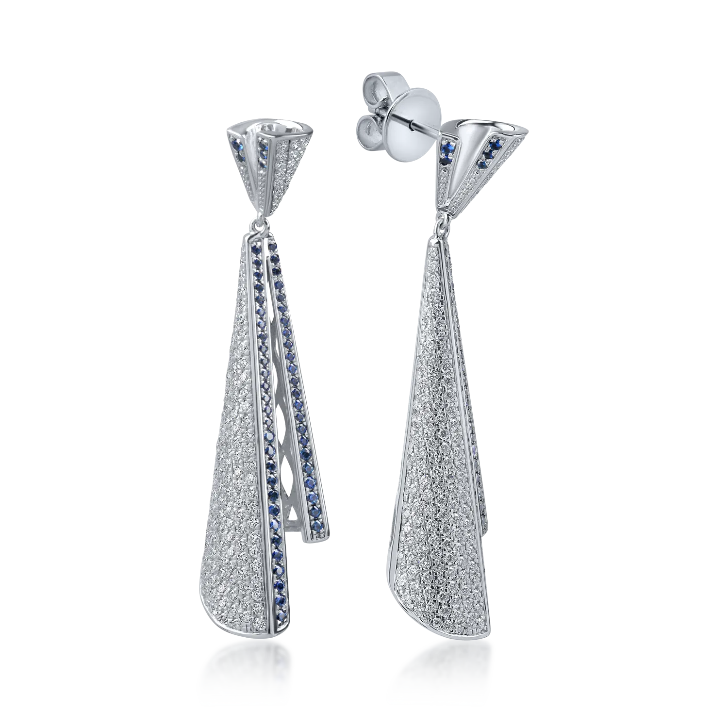 Cercei lungi din aur alb cu diamante de 1.7ct si safire de 0.7ct