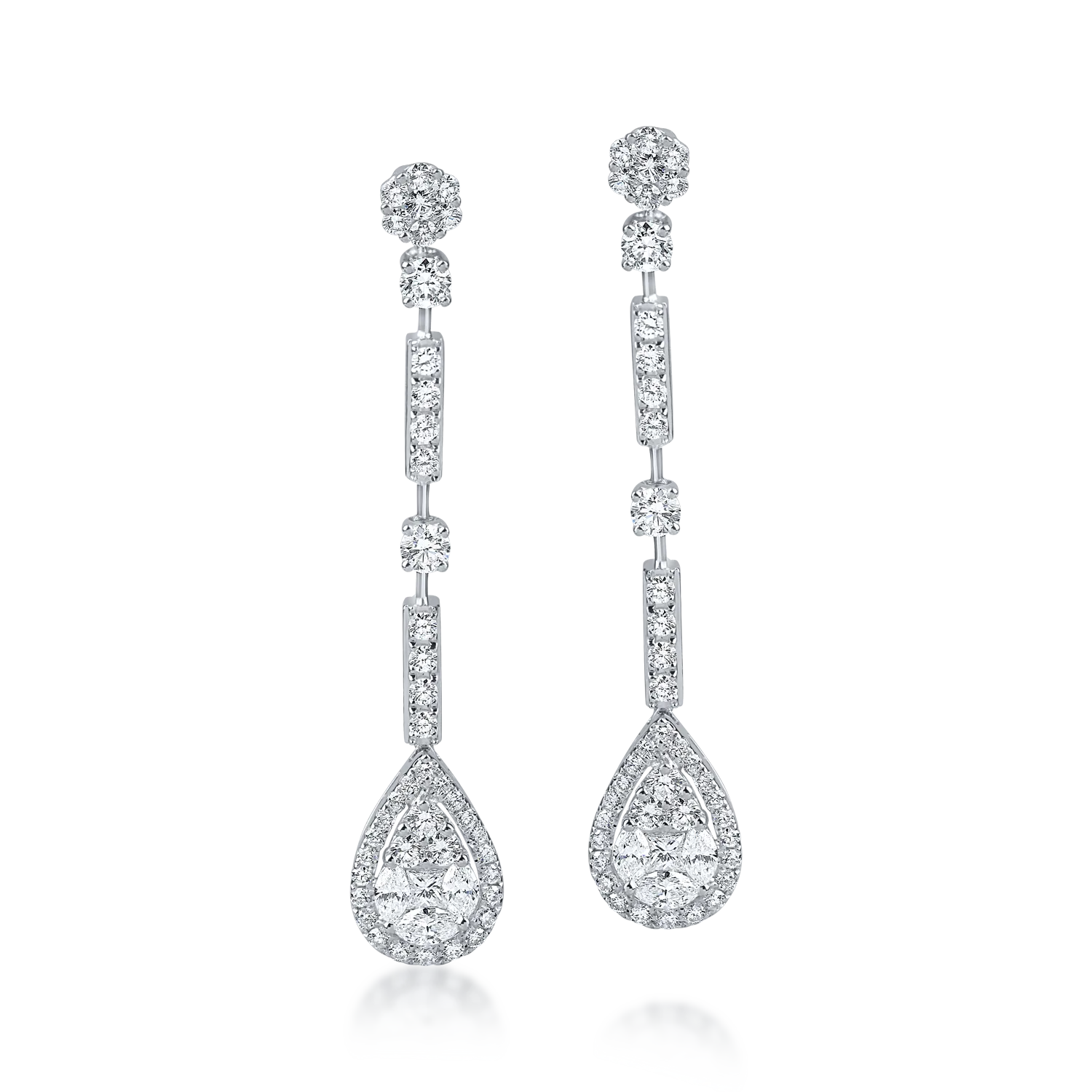 Cercei lungi din aur alb cu diamante de 1.89ct