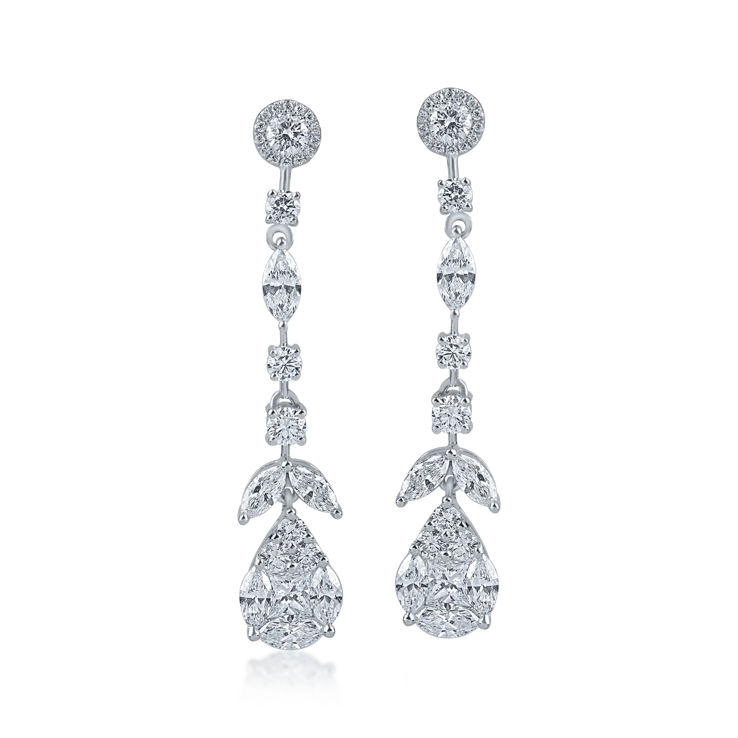 Cercei lungi din aur alb cu diamante de 2.8ct