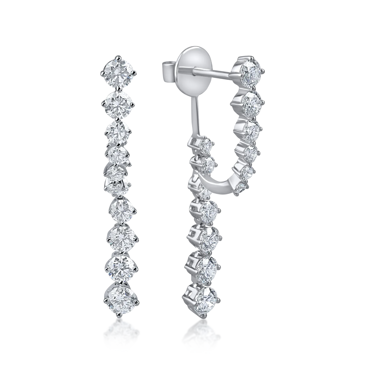 Cercei lungi din aur alb cu diamante de 2ct