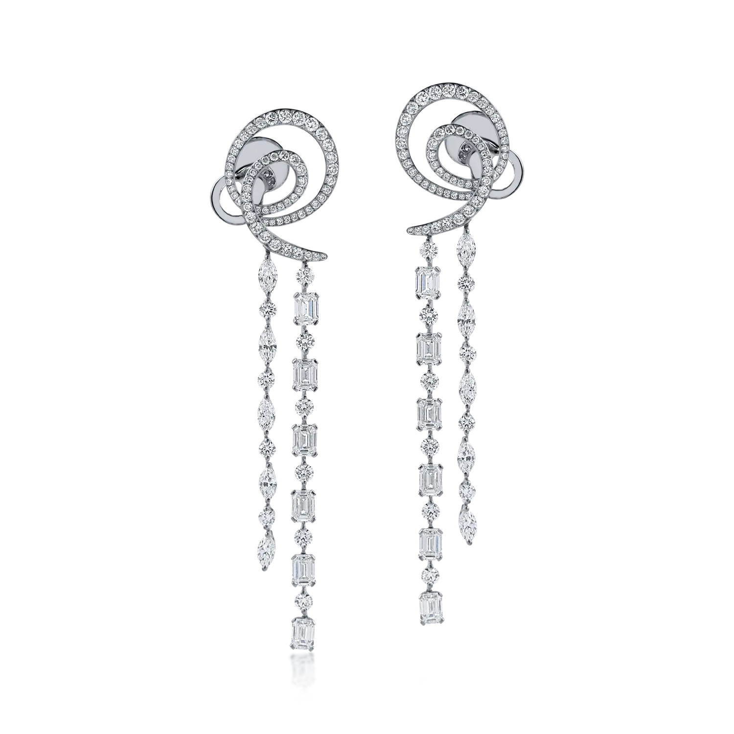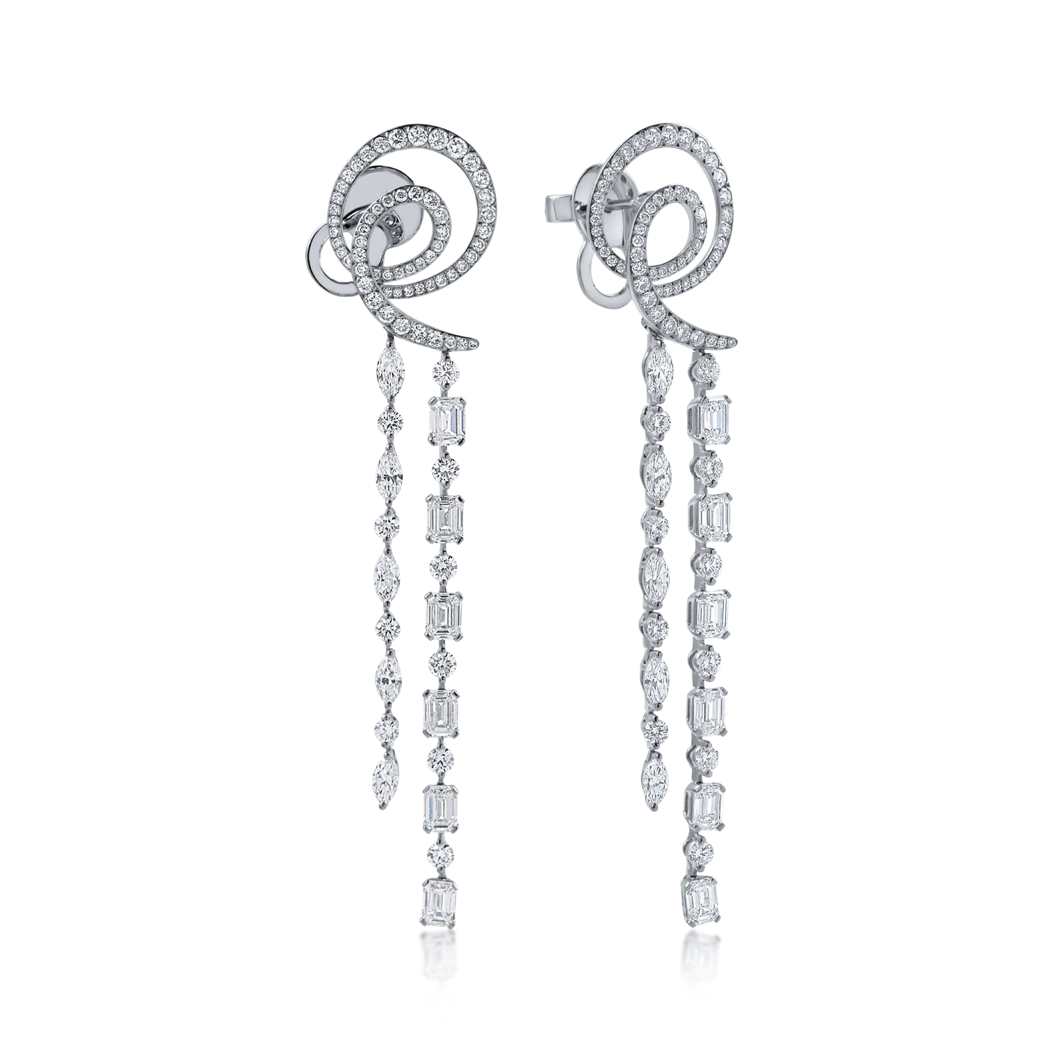 Cercei lungi din aur alb cu diamante de 5.5ct