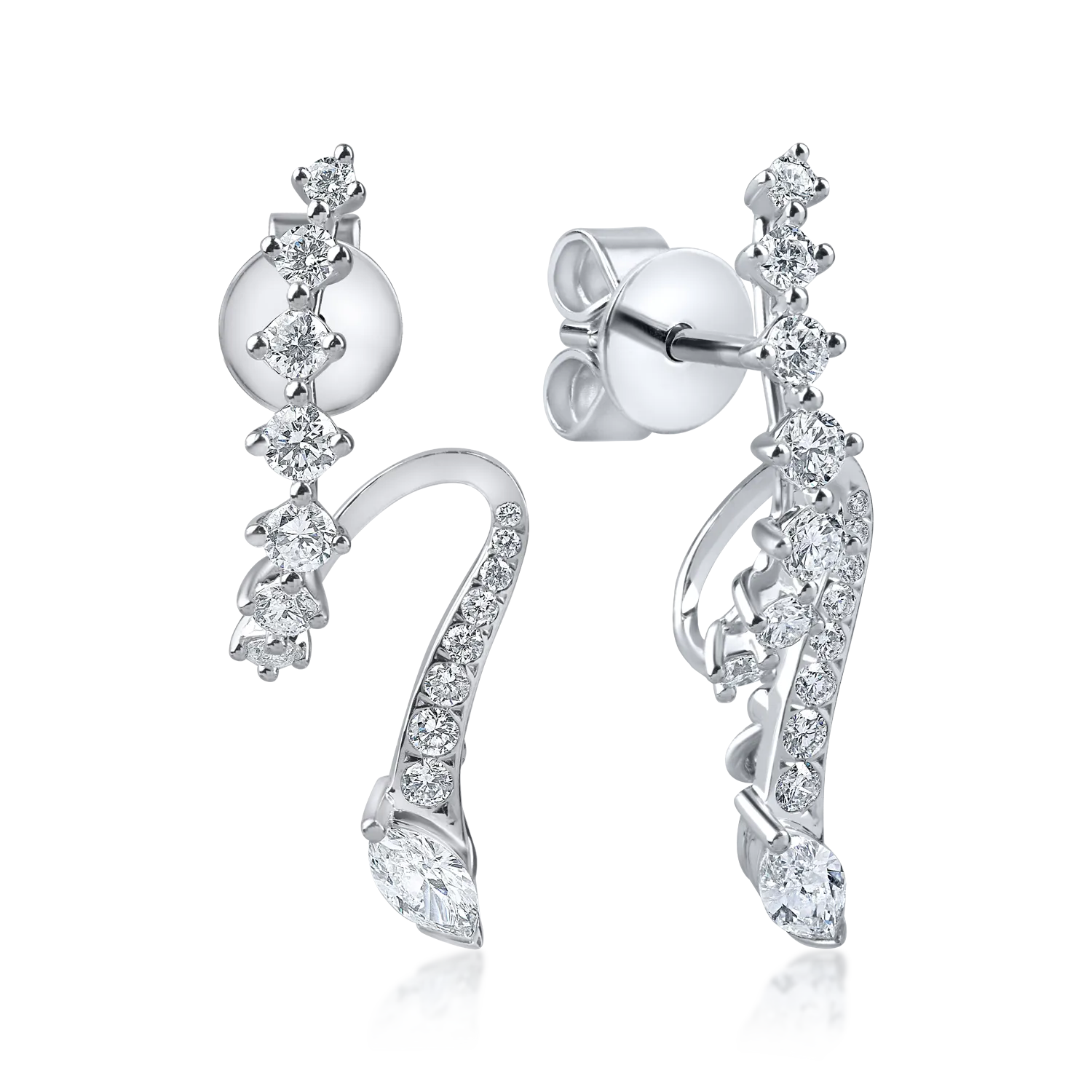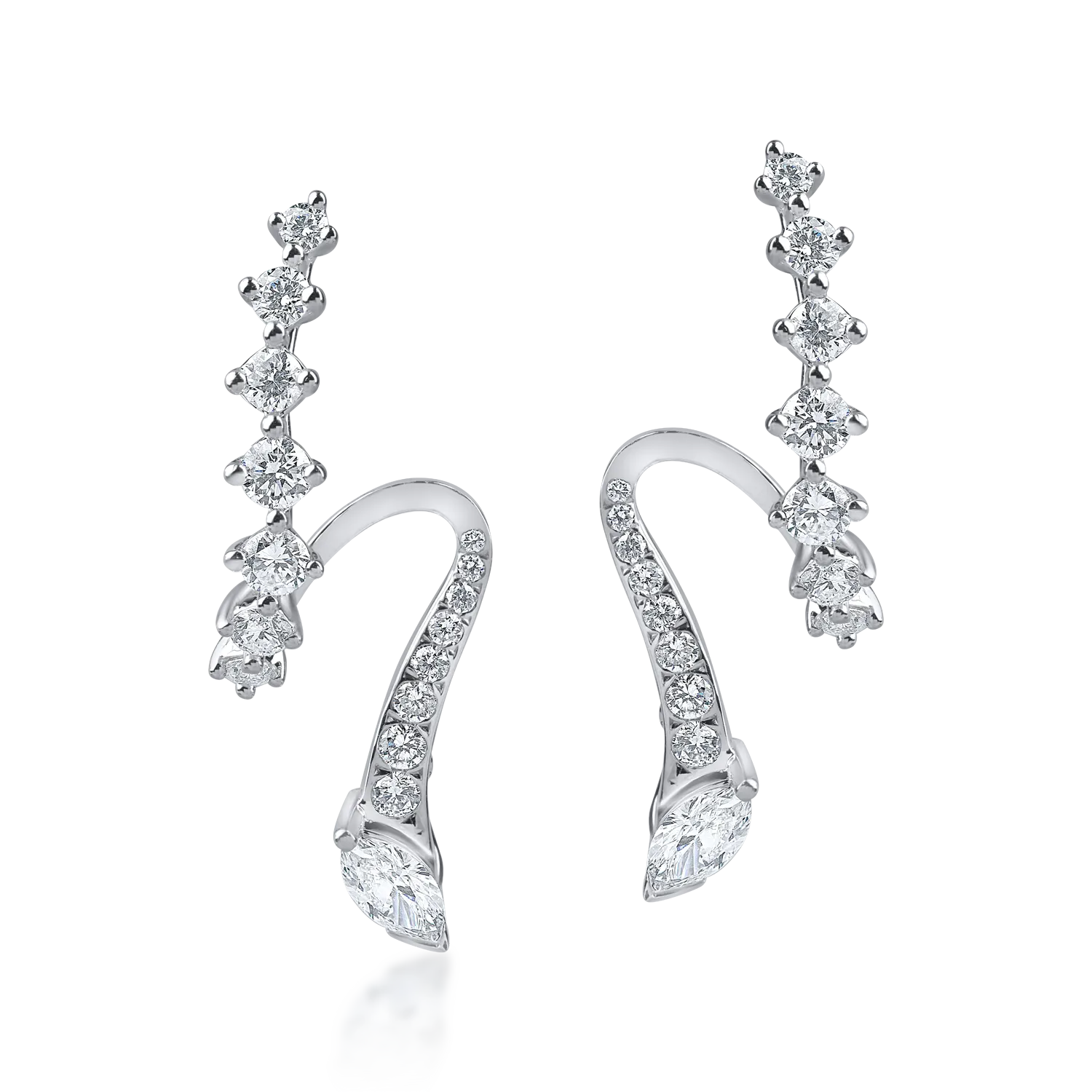 Cercei lungi din aur alb cu diamante marquise si rotunde de 1.18ct