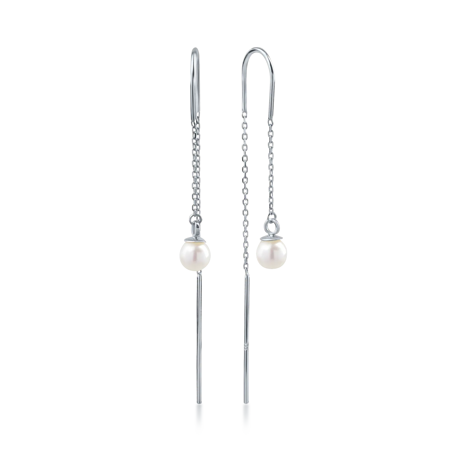 Cercei lungi din aur alb cu perle sintetice