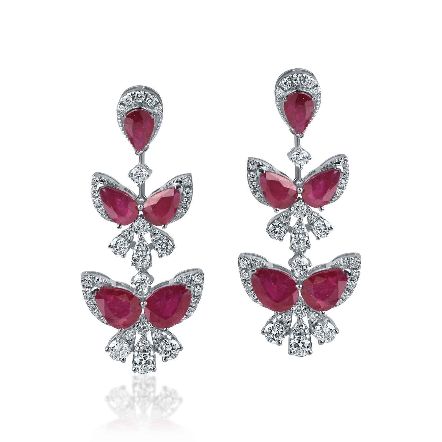 Cercei lungi din aur alb cu rubine pear de 6.1ct si diamante round de 1.5ct