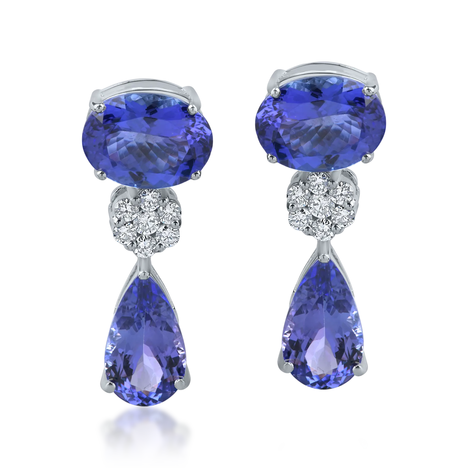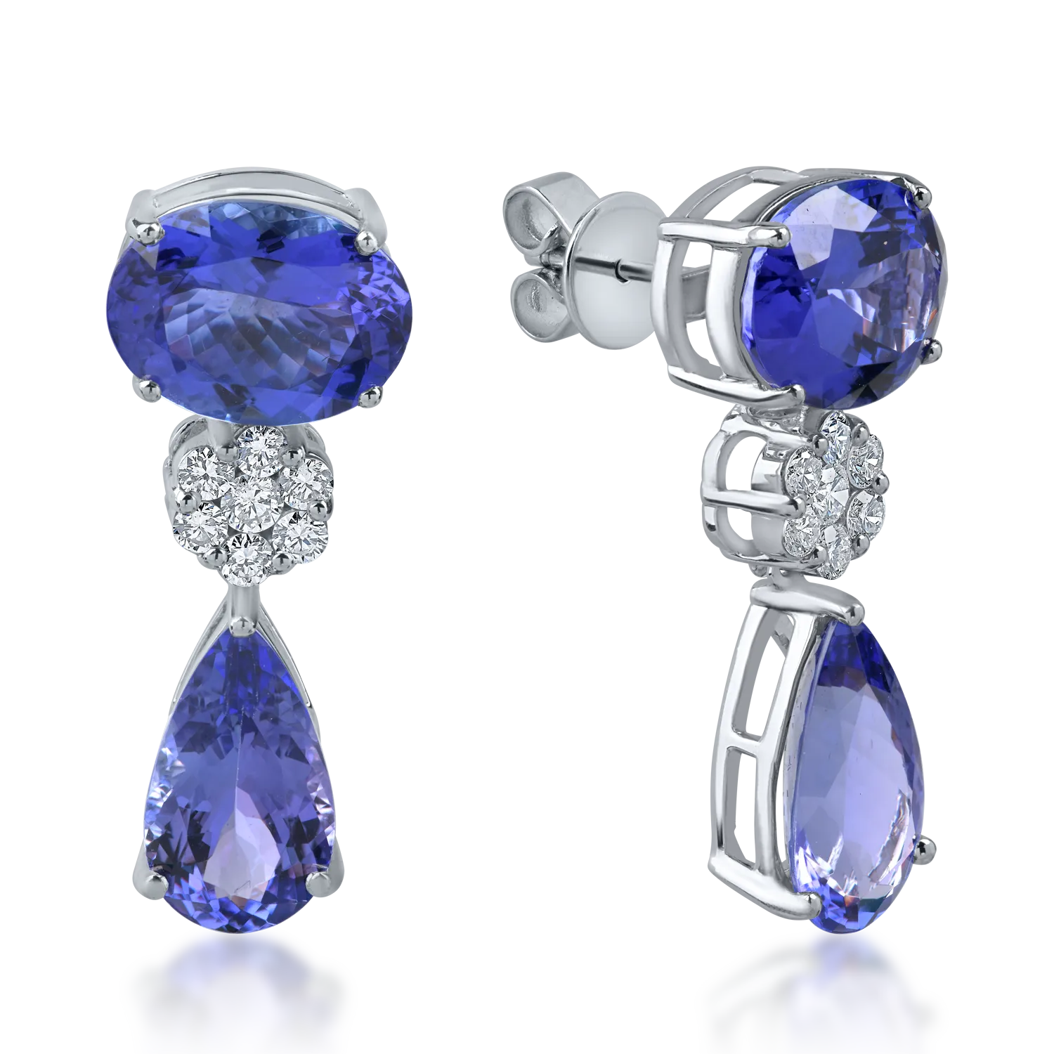 Cercei lungi din aur alb cu tanzanite de 16.5ct si diamante de 0.6ct