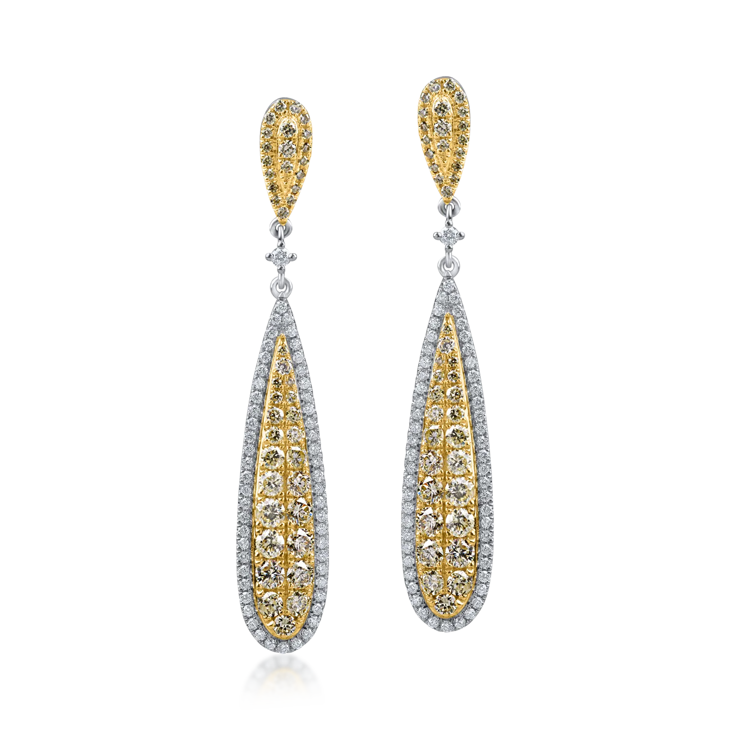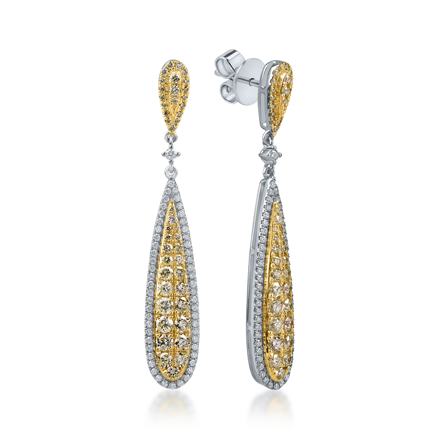 Cercei lungi din aur alb-galben cu diamante galbene si incolore de 1.8ct