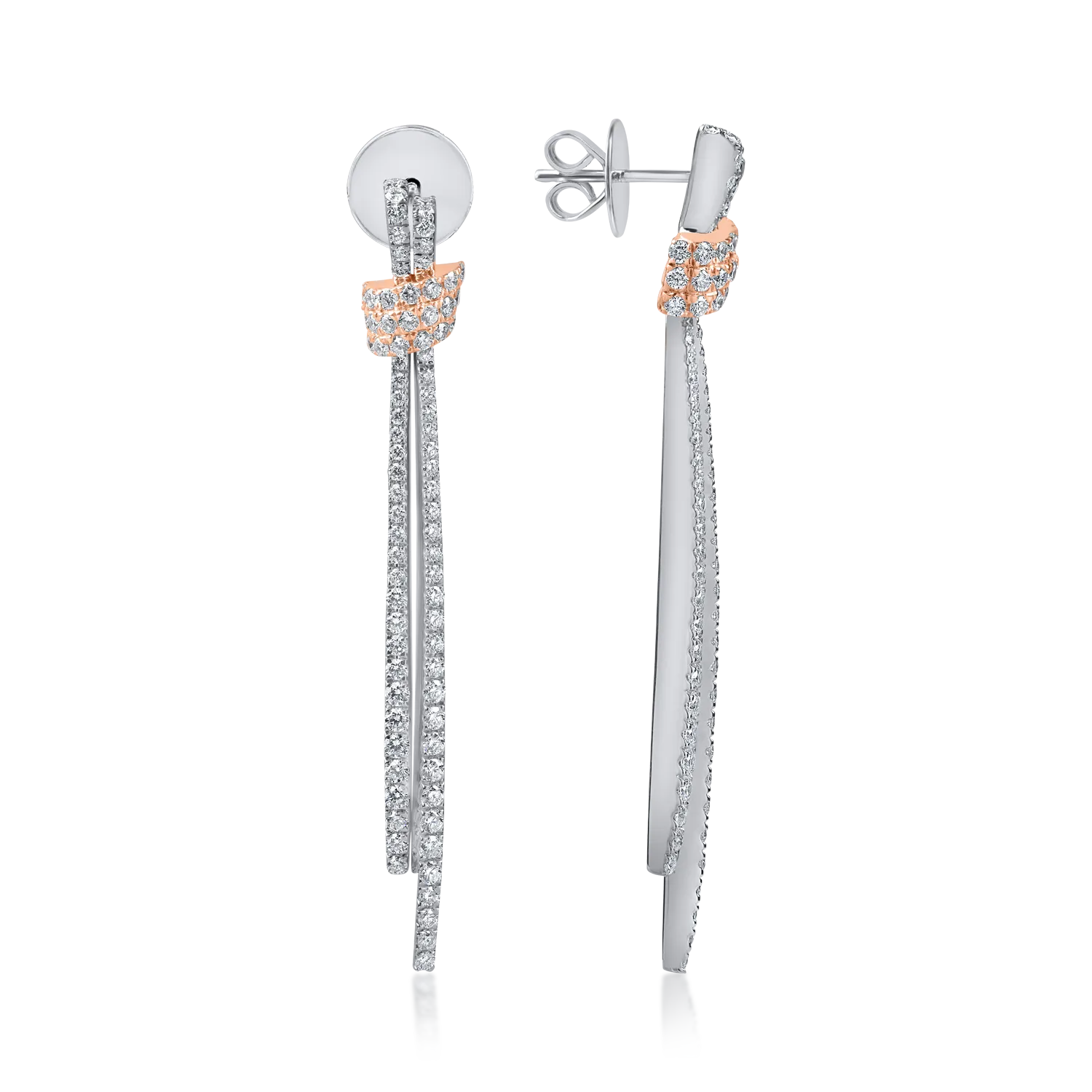 Cercei lungi din aur alb-roz cu diamante de 1.6ct