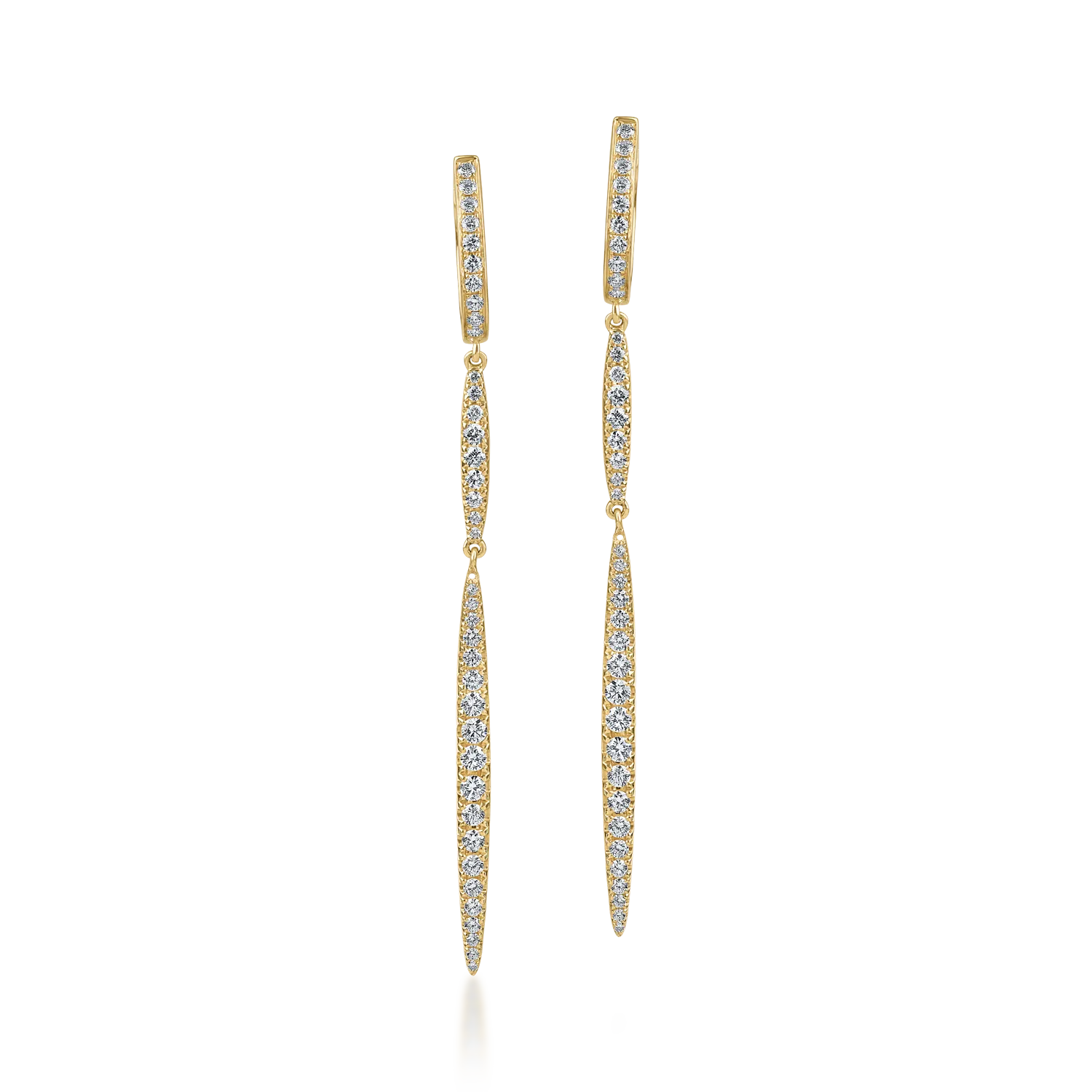 Cercei lungi din aur galben cu diamante de 1.3ct
