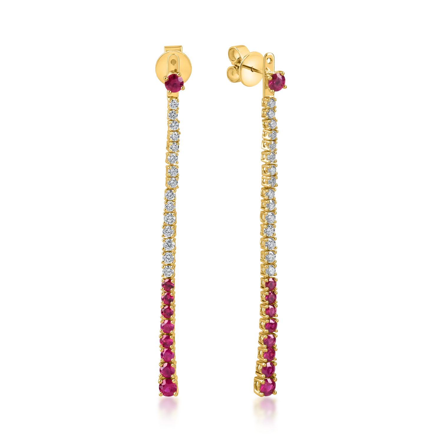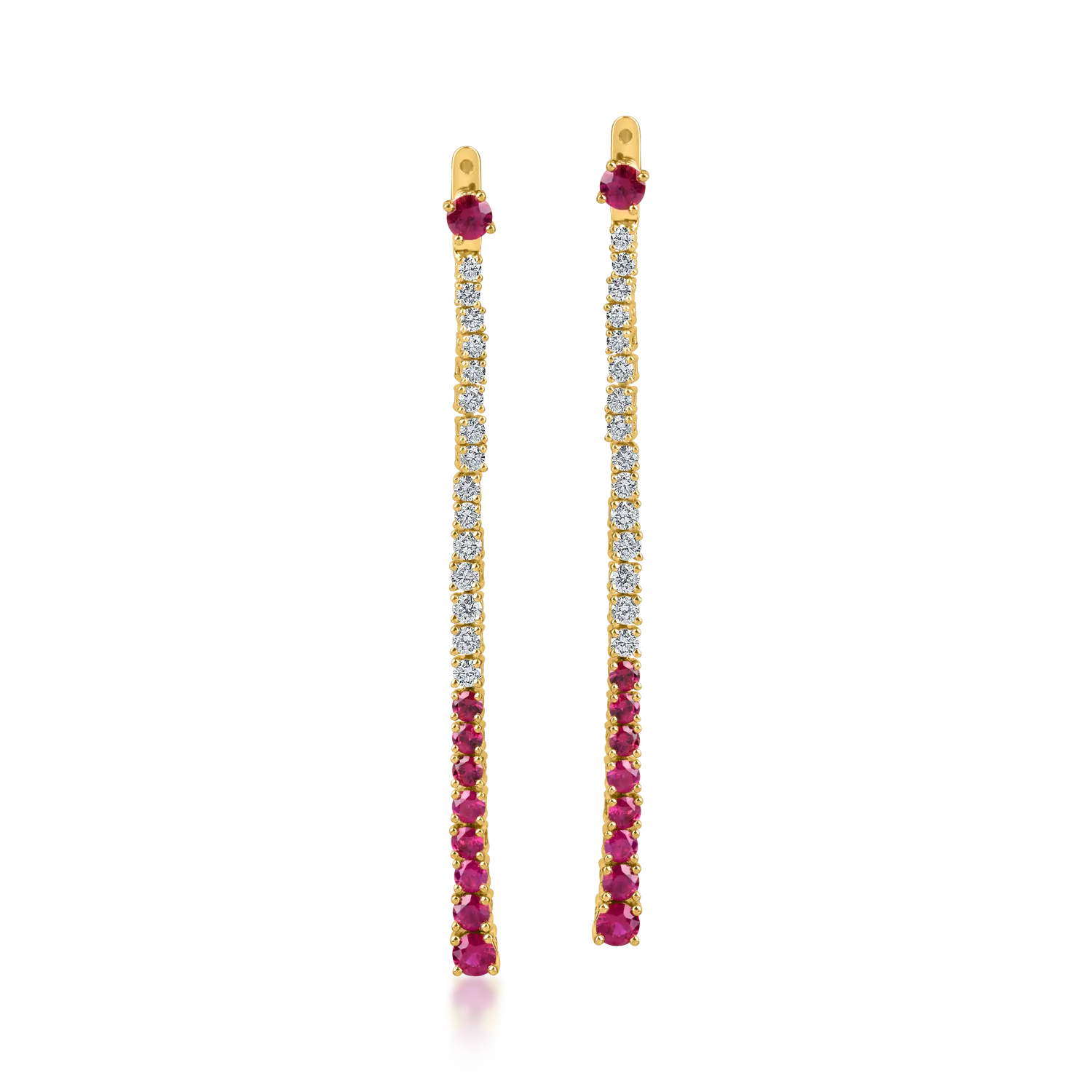 Cercei lungi din aur galben cu rubine si diamante 2.2ct