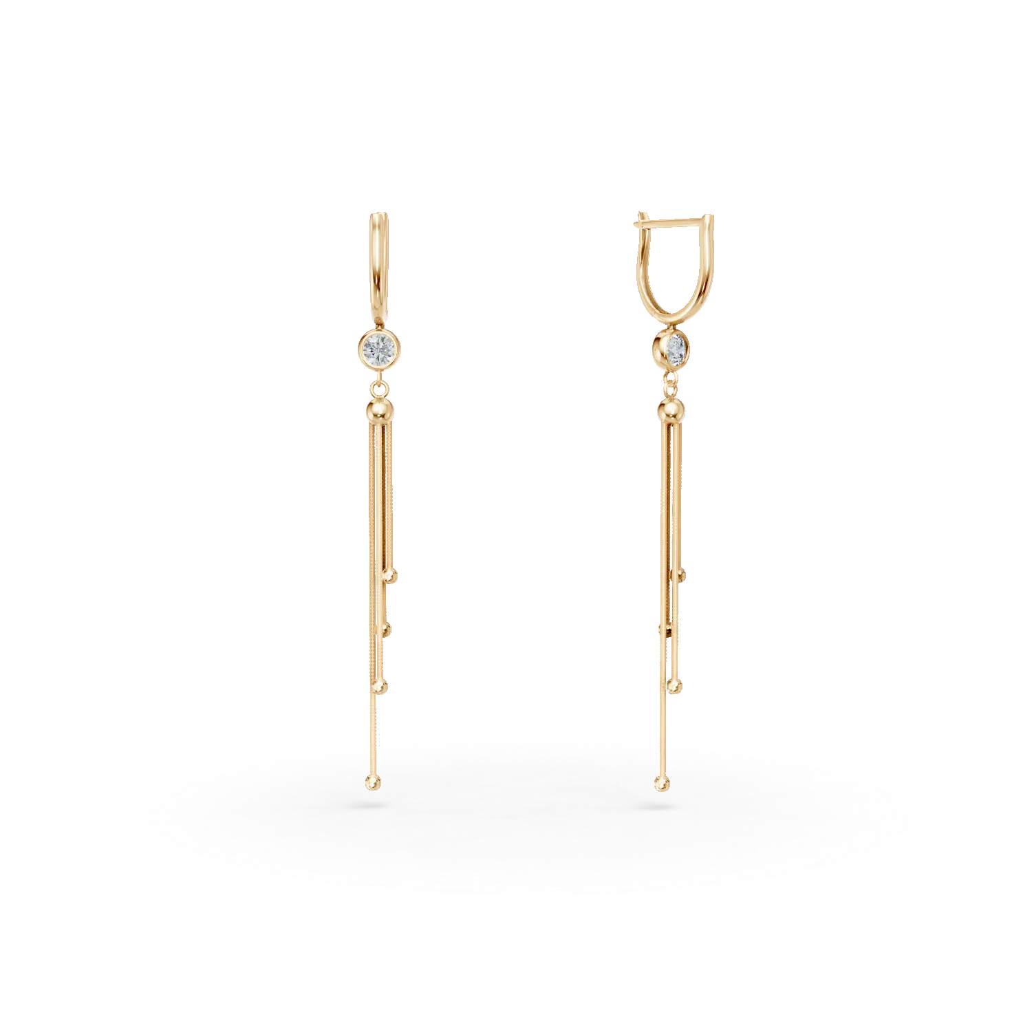 Paseste in universul bijuteriilor expresive. Poarta si ofera din dragoste aceasta pereche de cercei lungi din aur galben cu zirconii. O emotie capturata intr-o piesa delicata. Un echilibru perfect intre modern si clasic care celebreaza fiecare clipa.