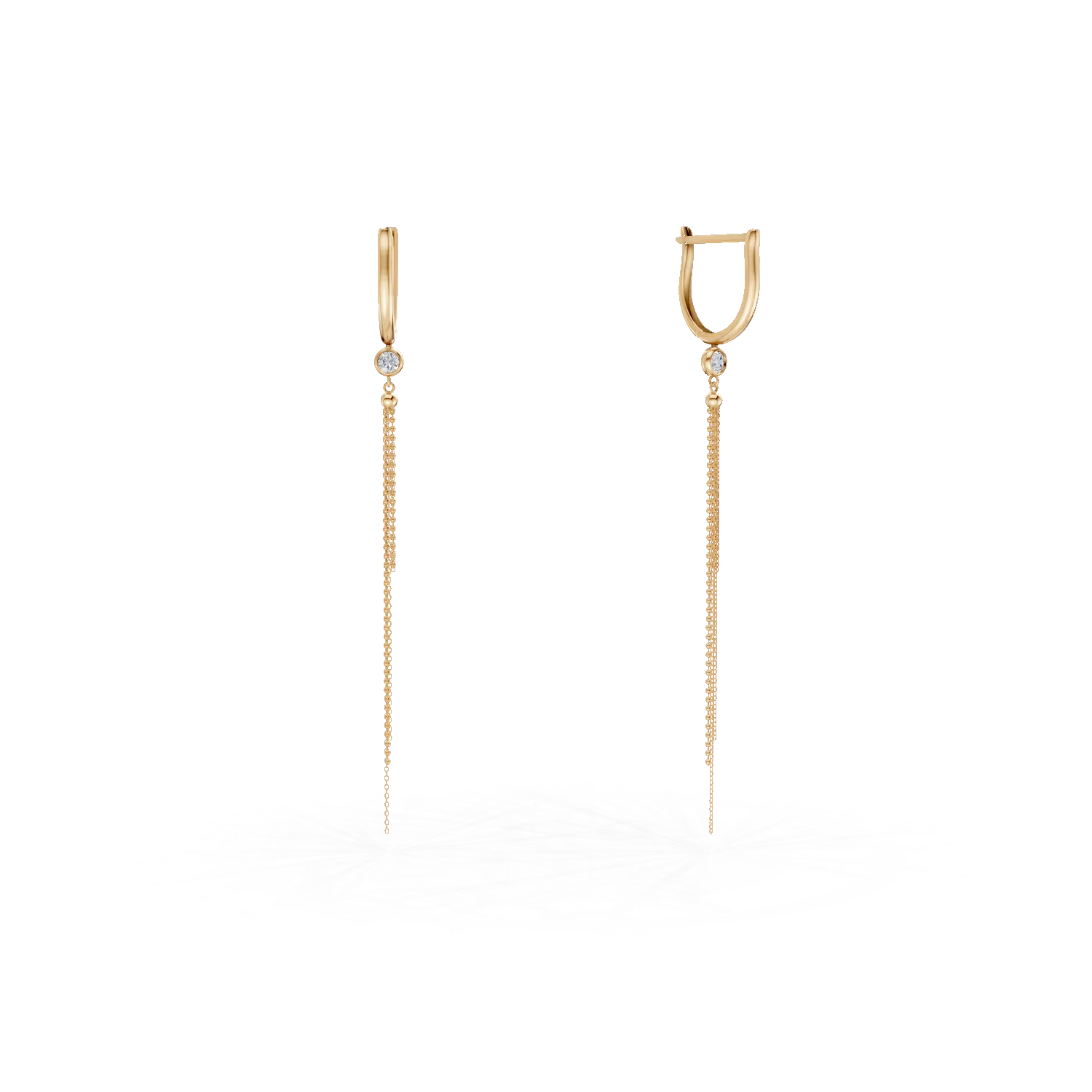 Paseste in universul bijuteriilor expresive. Poarta si ofera din dragoste aceasta pereche de cercei lungi din aur galben cu zirconii. TEILOR – o lume in care dragostea pentru frumos este o sursa de inspiratie.