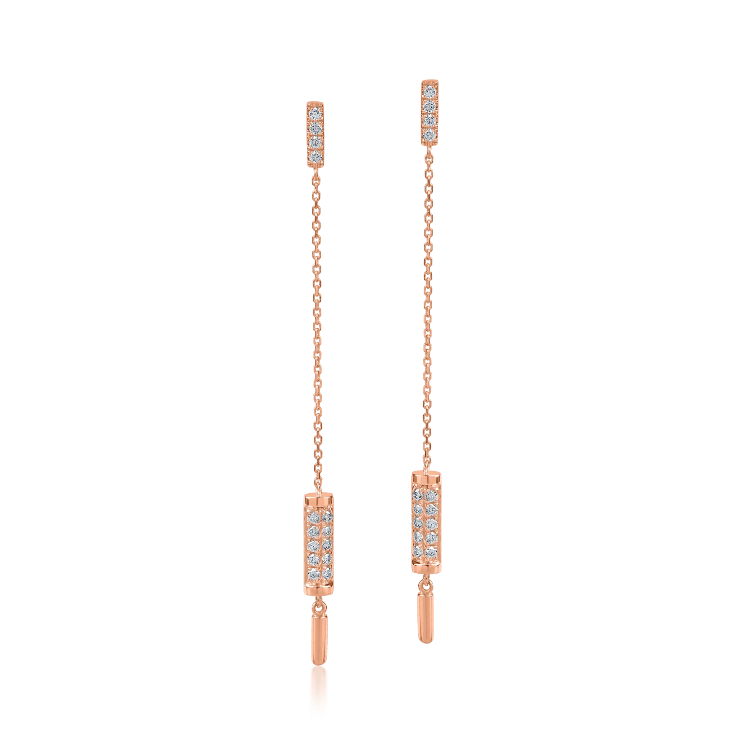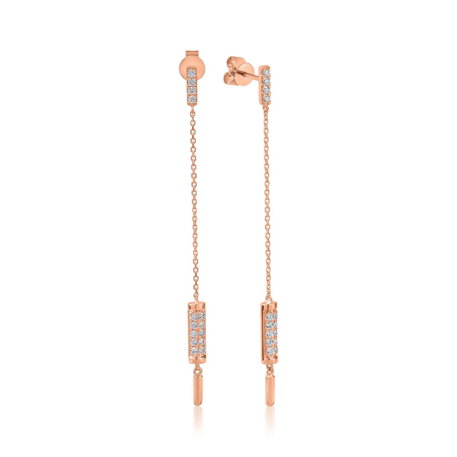 Cercei lungi din aur roz cu diamante de 0.2ct