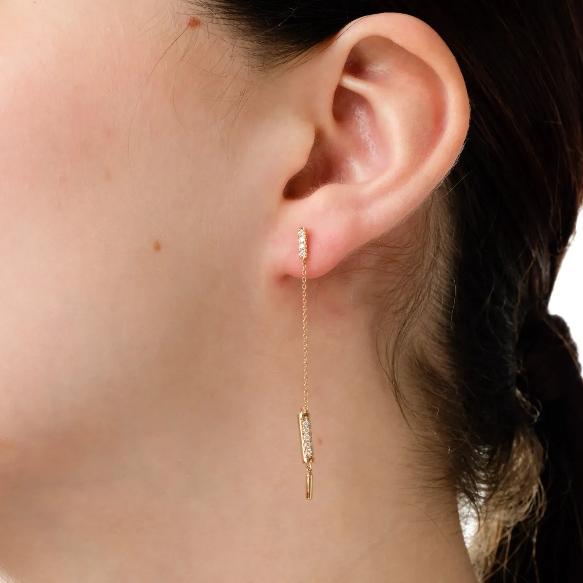 Paseste in lumea seducatoare a bijuteriilor pregatite sa cucereasca inimi si priviri. Autenticitatea designului si rafinamentul cerceilor lungi din aur roz cu diamante de 0.2ct dau o nota eleganta oricarui stil. Lasa-i sa vorbeasca despre tine.